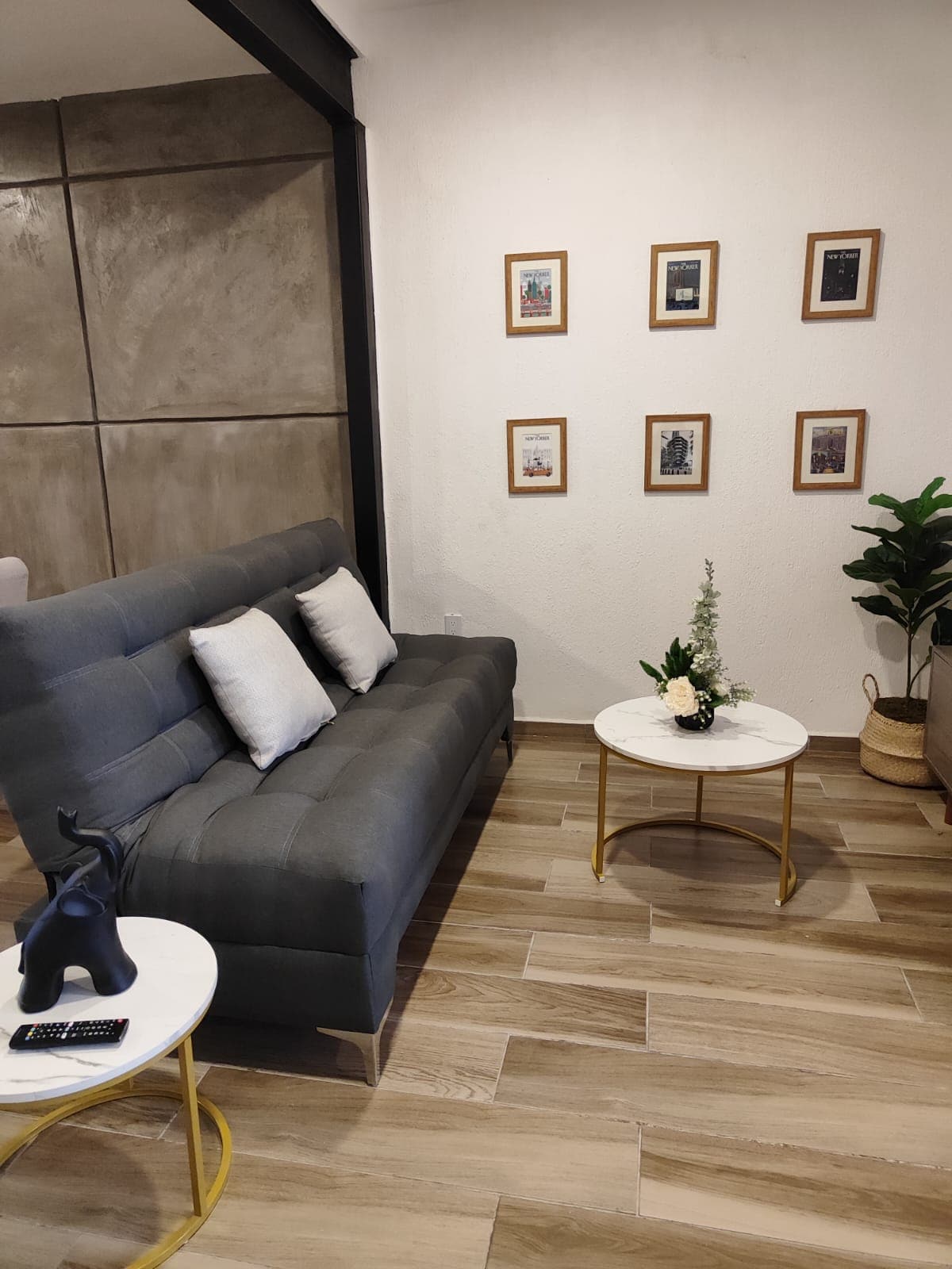 😊 Profitez de cet appartement situé dans la copropriété Amerittania, au cœur de Guadalajara 🧭À quelques pas de Chapultepec, entouré de cafés, de restaurants, de bars, de galeries d'art et de vie nocturne. dispose de : Gymnase entièrement équipé. Piscine EN RÉPARATION NE FONCTIONNE PAS Terrasse et espaces communs Profitez de la vue sur la ville tout en travaillant, en cuisinant ou en vous relaxant dans le salon de cet appartement sur deux niveaux. 2 réseaux WiFi haut débit et un espace de travail, pour le bureau à domicile