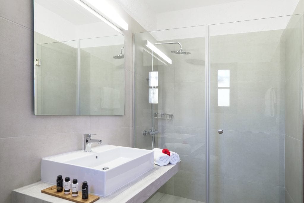 La chambre supérieure, avec lit Queen Size, est conçue pour offrir du luxe ainsi que la meilleure vue sur la ville, pouvant accueillir jusqu'à deux personnes. Il est situé juste en face du port où les bateaux partent pour l'île de Chrysi, avec une vue panoramique sur la mer libyenne et le centre d'Ierapetra.