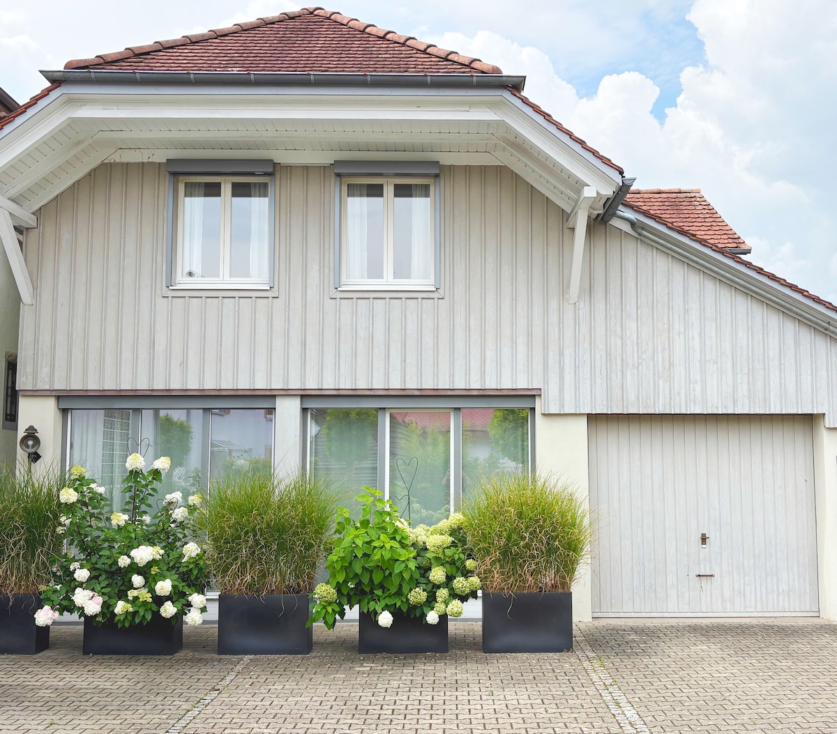 Notre appartement mansardé lumineux de 3 pièces est situé dans une zone rurale, mais offre plusieurs possibilités de shopping à 2-5 min à pied. La frontière suisse est à seulement 5 min en voiture de l'appartement. L'appartement dispose de 2 chambres et d'un grand salon, d'une salle à manger et d'une cuisine. L'appartement dispose de son propre balcon ainsi que d'une belle vue depuis la lucarne. Un parking gratuit, un lave-linge et une connexion Internet rapide sont inclus. De plus, nous offrons à nos clients un accès gratuit à Netflix, Amazon Prime Video et Disney+ !