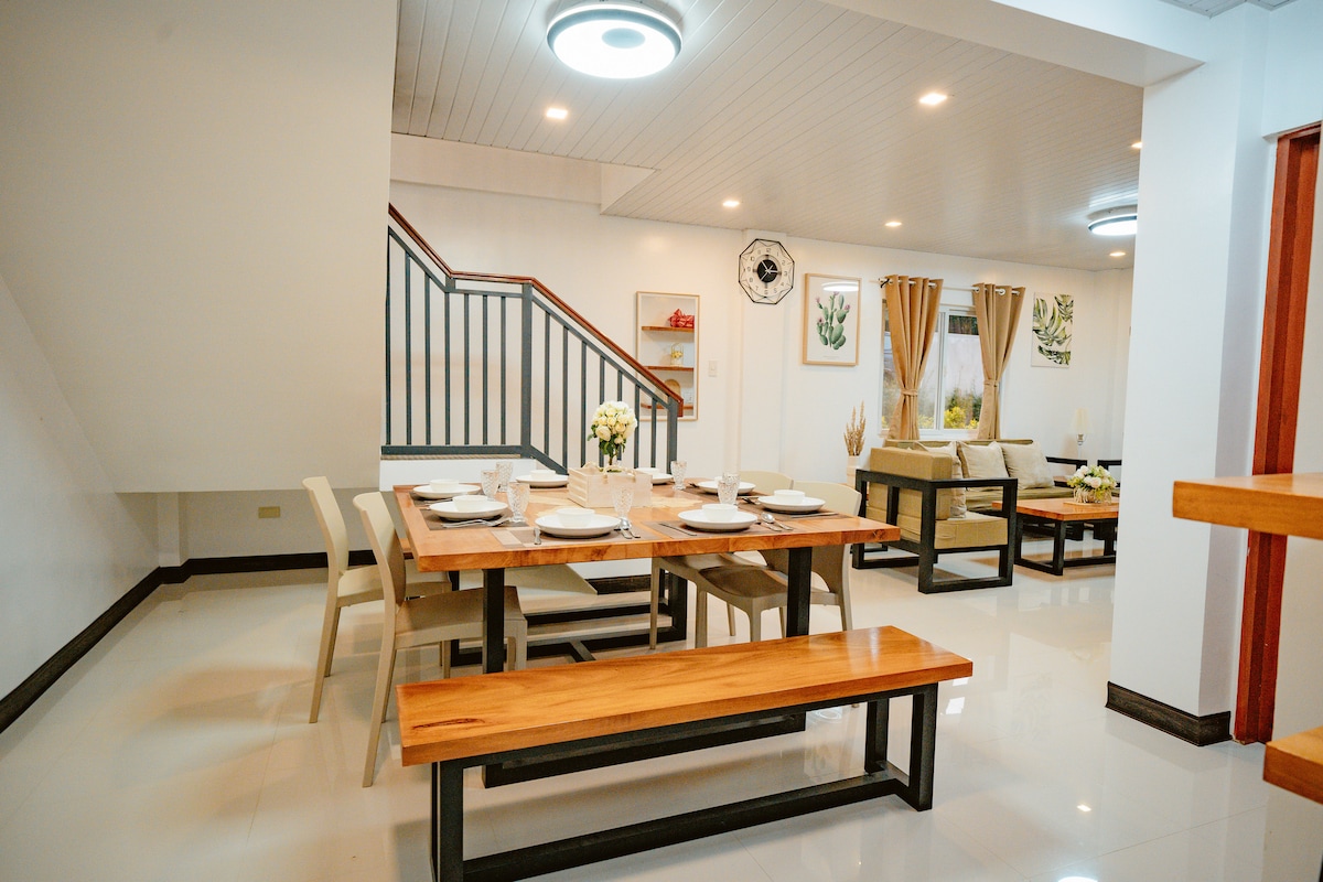 Enjoy a spacious, American-inspired home surrounded by pine trees in Saratoga Hills, Tagaytay Midlands. - Accommodates up to 30 guests (₱1,300 per guest/night after 12pax) - Free breakfast buffet (for bookings made from 2025) - 65-inch TV with Netflix & YouTube - Starlink internet (100+ Mbps) - Karaoke & billiards - Large griller & smoker - Fully equipped kitchen with utensils & condiments - Arcade & board games - PWD & pet-friendly - We can sponsor Guest Cards with a FEE