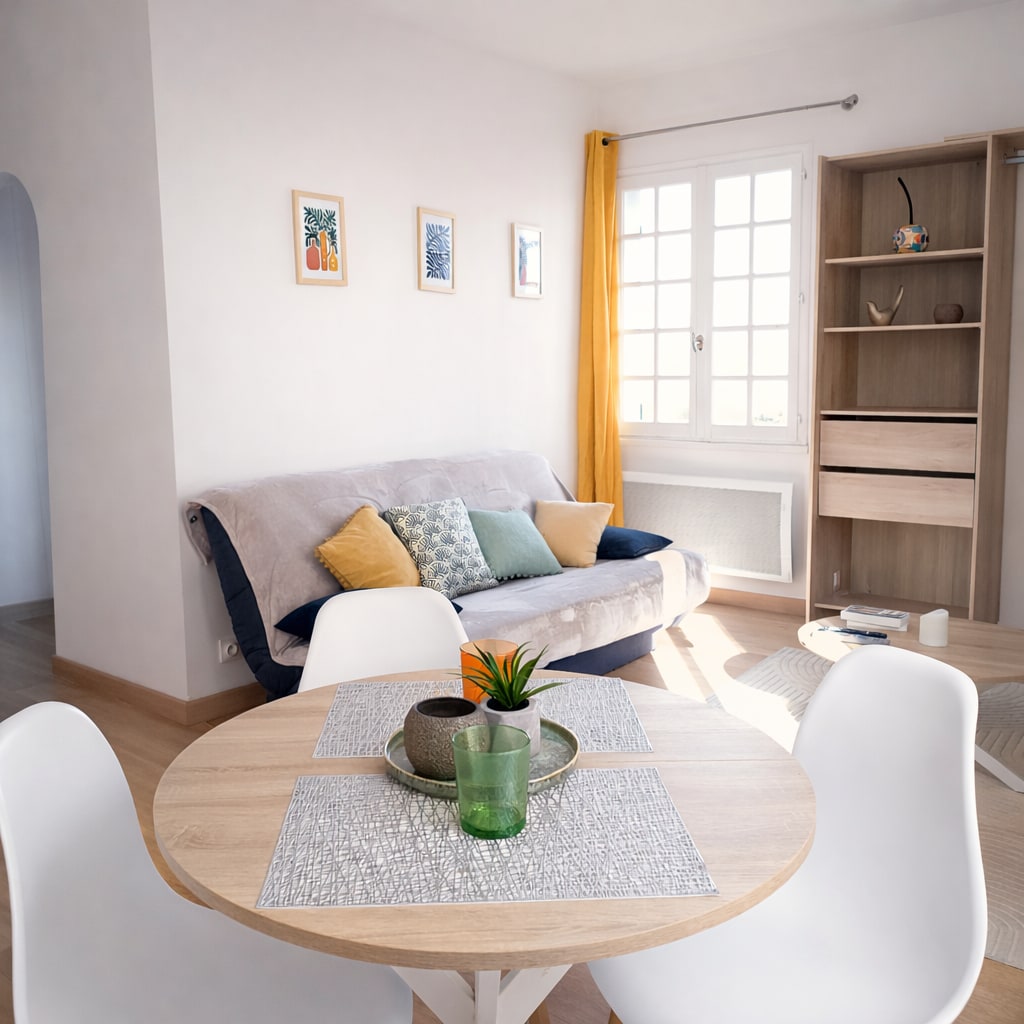 [⭐️ Logement étoilé ⭐️] Appartement lumineux et fraichement rénové avec des matériaux et du mobilier de qualité. Proche de la mer, de la base nature, de la gare SNCF et du centre ville, son emplacement dans un quartier calme et résidentiel vous séduira. Jardin aux notes exotiques, pergola à lames orientables, possibilité de stationner votre voiture dans le jardin ou encore faire bronzette au soleil. Draps et serviettes inclus sans supplément, papier WC et café d'avance.