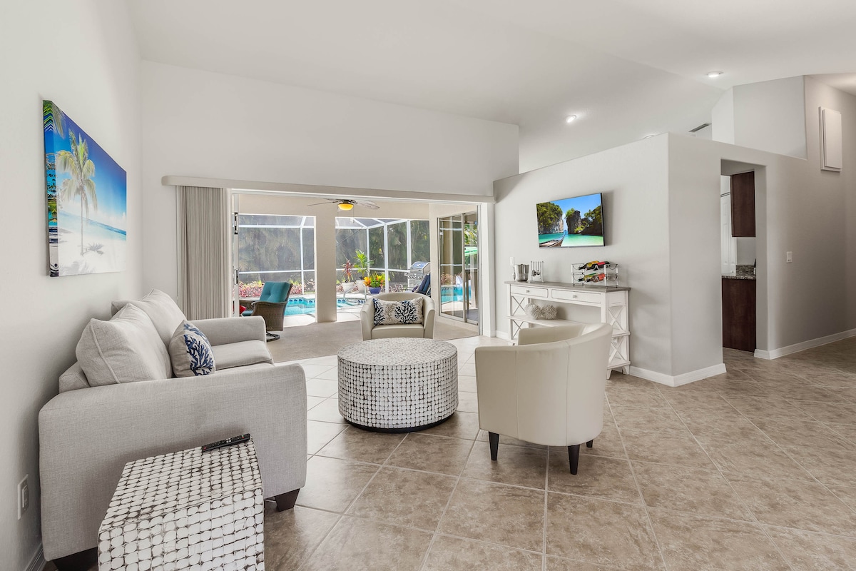 Sunny Oasis est une belle maison de style moderne avec piscine d'eau salée chauffée orientée ouest et spa. Profitez d'un barbecue avec la cuisine extérieure et les couchers de soleil à couper le souffle. Courte distance en voiture de l'aéroport international de Floride et de la plage de Fort Myers ! ! Situé au cœur de Southwest Cape Coral et à seulement 21 miles de l'aéroport international du sud-ouest de la Floride. Près de nombreuses plages étonnantes, MN Twins Spring Training, restaurants amusants et magasins. Des souvenirs amusants sont assurés d'être créés !