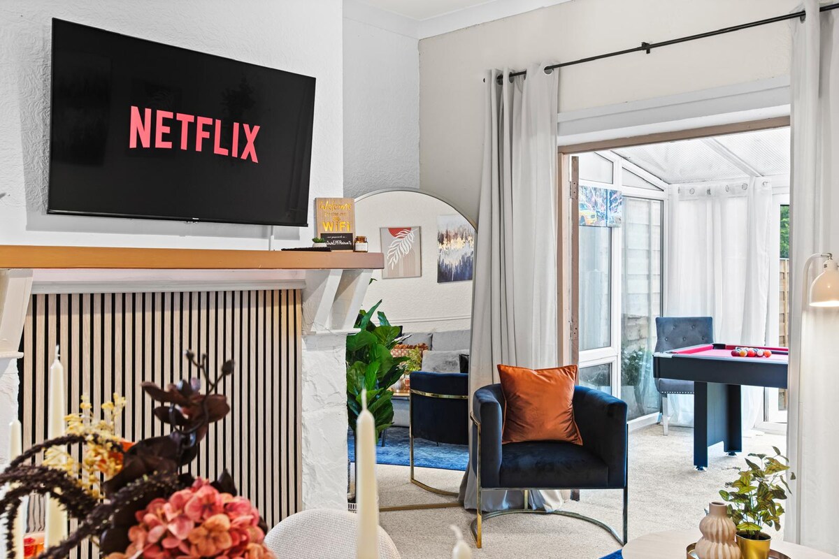 Réseaux sociaux : « Manchester Hidden Gem » pour une réservation directe Retraite privée de luxe : Ultimate WOW Factor ! Entrez dans l'indulgence lors de cette superbe escapade fermée, où l'élégance rencontre le plaisir. Détendez-vous dans le spa, profitez de soirées cinéma dans l'un des deux salons élégants ou défiez vos amis dans la salle de jeux. Cuisinez et divertissez dans l'élégante cuisine ouverte, le tout dans un environnement magnifiquement isolé. Une expérience cinq étoiles dès votre arrivée. Extrêmement proche de l'aéroport de Manchester et du centre-ville.
