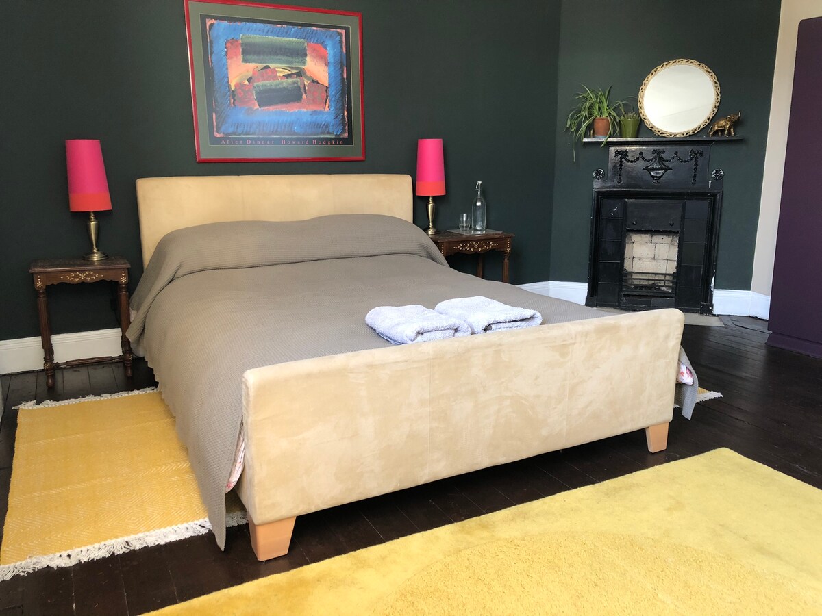 Chambre spacieuse et confortable avec lit double. Wifi ultra-rapide et télévision à écran plat avec Netflix. Éclairage funky. Linge de lit et les serviettes sont propres. Thé/café gratuit. À 7 min du centre-ville de Bradford et de la M606. À 15 min d'Halifax. Les voyageurs d'affaires, les touristes, les routards, les travailleurs contractuels à court et à long terme sont les bienvenus. Pays de Brontë, Musée des médias de la photographie, Arts, Saltaire, Festivals, connaisseurs de bière, amateurs de curry - près de l'université, des théâtres et du centre-ville.