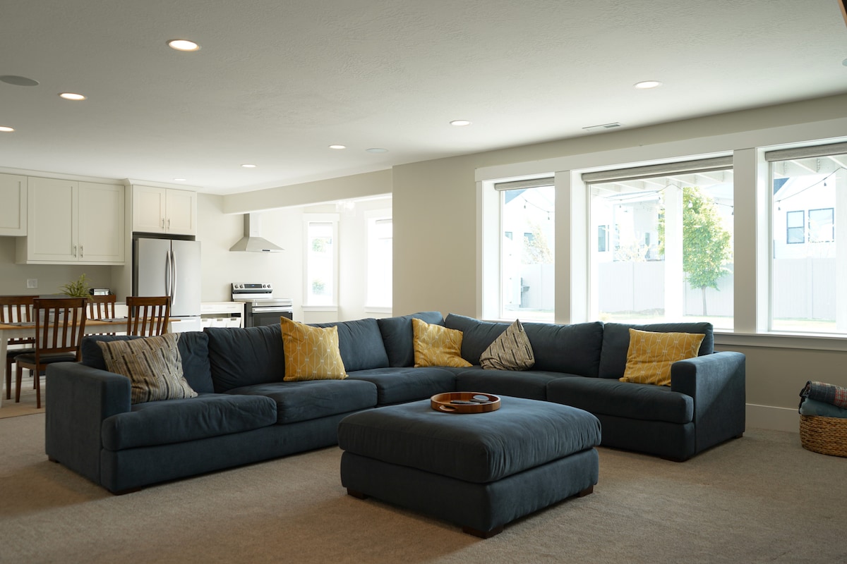 Spacious 2,000 sq ft private 3BR suite sleeping up to 8. Full basement with 1 bathroom, private entrance, and bright living spaces — ideal for families, hospital visits, and small groups. Location Just off I-15 — 30 min to Provo & SLC, 3 mi to Lehi PCH. Near parks, outlets, and restaurants. The space Private entrance, full kitchen, comfy beds, fast Wi-Fi. Light household sounds upstairs 7 AM–10 PM. Not suitable for parties or events. Guest access Entire private suite with separate entrance.