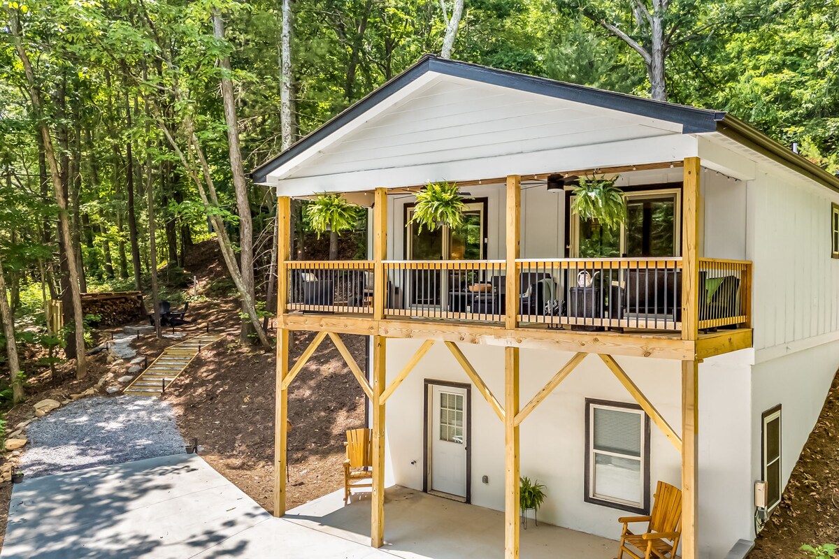 Ce n'est pas un Airbnb classique. À seulement 20 minutes de la maison Biltmore ou du centre-ville d'Asheville, bien que dans un cadre rural, notre maison d'hôtes dispose d'un plan d'étage ouvert, d'un porche spacieux, d'un jacuzzi de luxe couvert avec des rideaux d'intimité et d'un espace extérieur éclairé par un bistro avec foyer (bois inclus). En tant qu'hôtes, nous faisons un effort supplémentaire en créant des paniers de bienvenue sur mesure pour votre célébration ou votre escapade. Un séjour unique conçu pour le confort et le charme. Parfait pour les escapades romantiques.