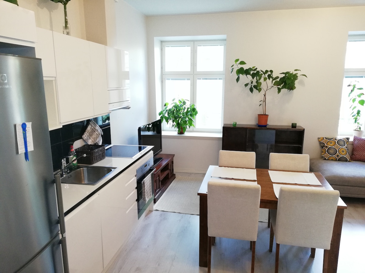 L'appartement dispose d'une douche, il y a peu d'eau chaude de 15 litres, donc il suffit pour une personne de prendre une courte douche à la fois. L'eau se réchauffera pendant environ une demi-heure. Draps et shampoing à disposition. Équipements de cuisine essentiels. Mini four/cuisinière, cafetière, bouilloire, réfrigérateur-congélateur et micro-ondes. Chauffage voiture 2h / 3 euros. Frais de personne supplémentaire 10 €