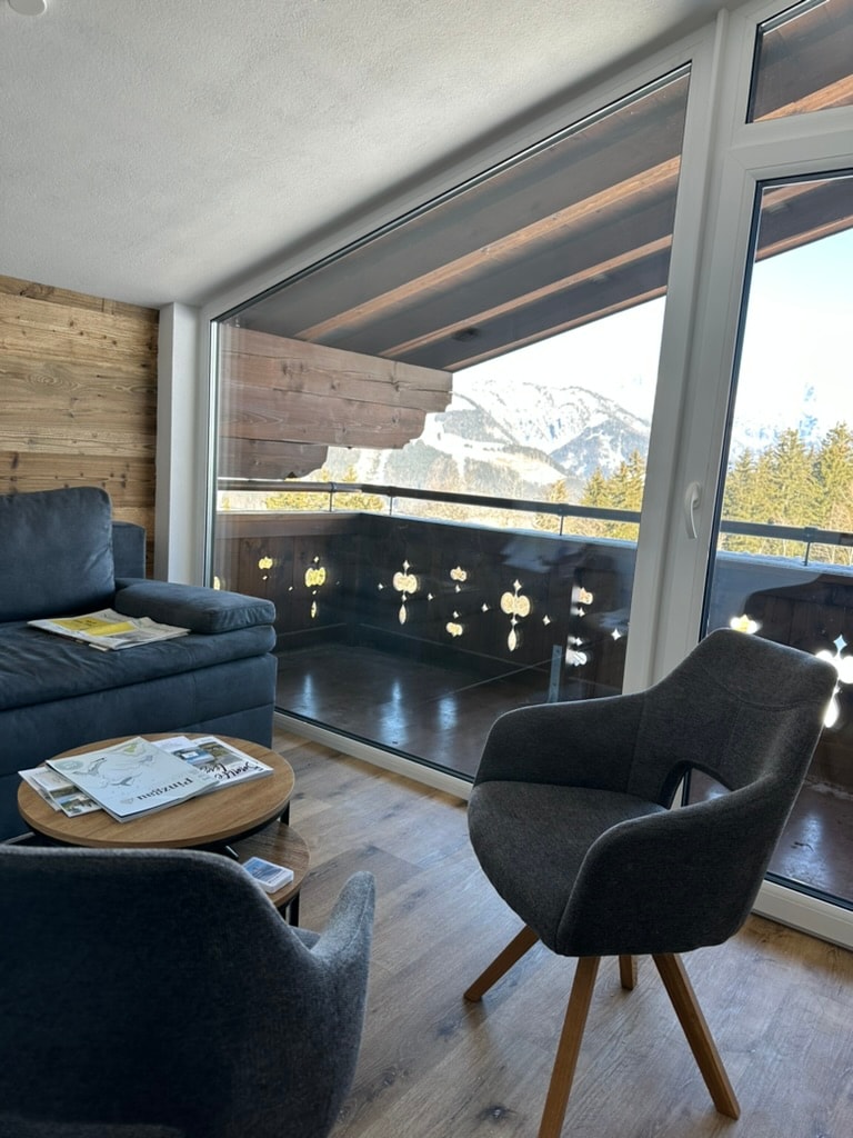 L'appartement de 75 m2 est à Obergschoss et est orienté à l'ouest. Les très grandes fenêtres panoramiques offrent des pièces inondées de lumière et de superbes vues. L'appartement est équipé d'un mobilier moderne, élégant et de haute qualité. Vous trouverez tout ce qu'il vous faut pour passer un séjour agréable. Profitez d'heures inoubliables au coucher du soleil sur le grand balcon. Dans notre immeuble d'appartements, il y a un total de 2 appartements pour un maximum de 7 personnes.