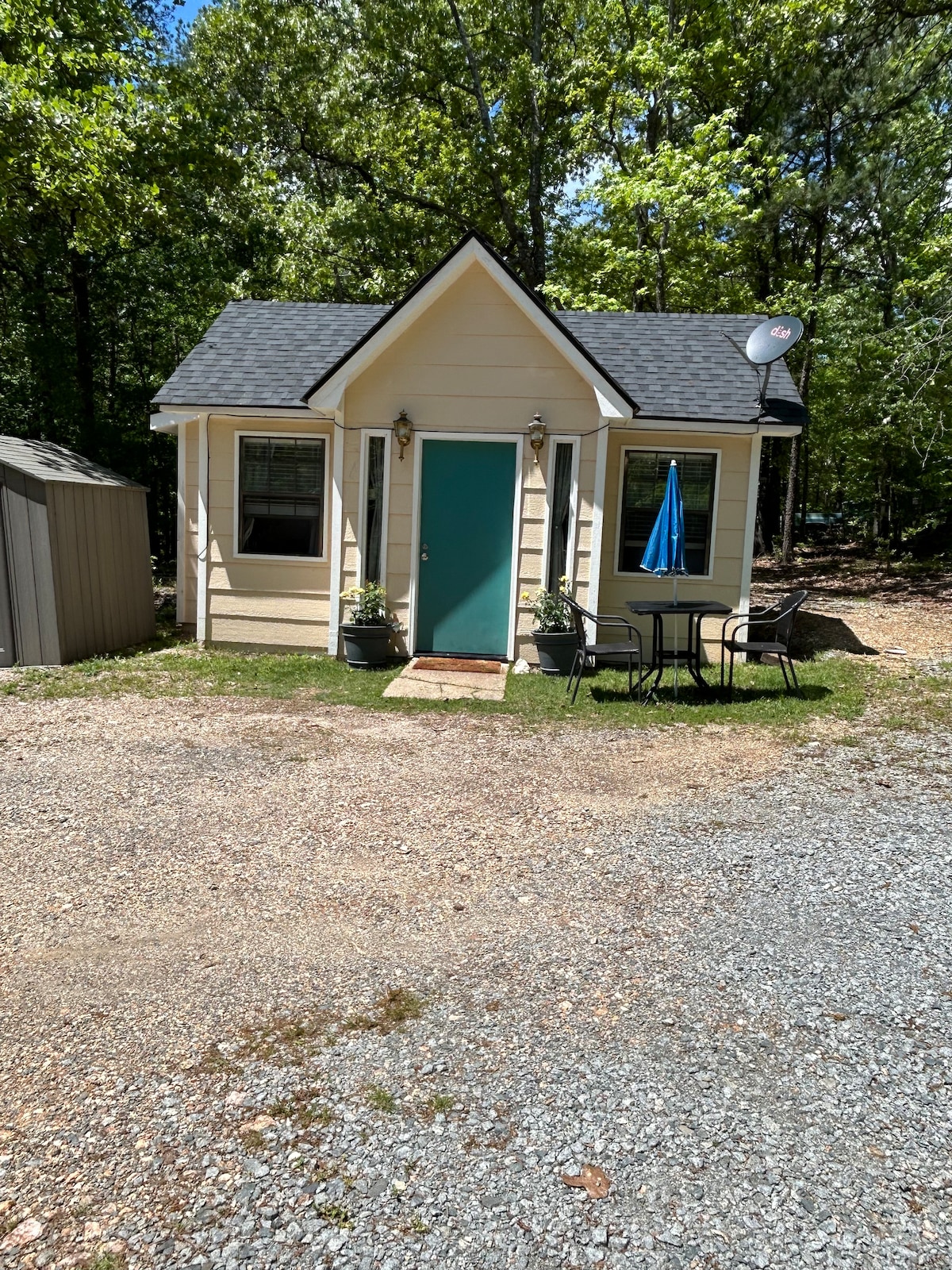 Light and open small studio cottage right on the water perfect for a relaxing getaway for 2 people, or a getaway for 1 person, not suitable for more because it’s too small. There is a small kitchenette with everything you need except a stove/oven. Please note, there is a steep hill to walk down and back up to the parking spot under the carport. Also, this year ( Nov-Feb) the Corps of Engineers will lower Lake Hamilton 5 feet, and water in our cove will be minimal. Sorry for inconvenience.