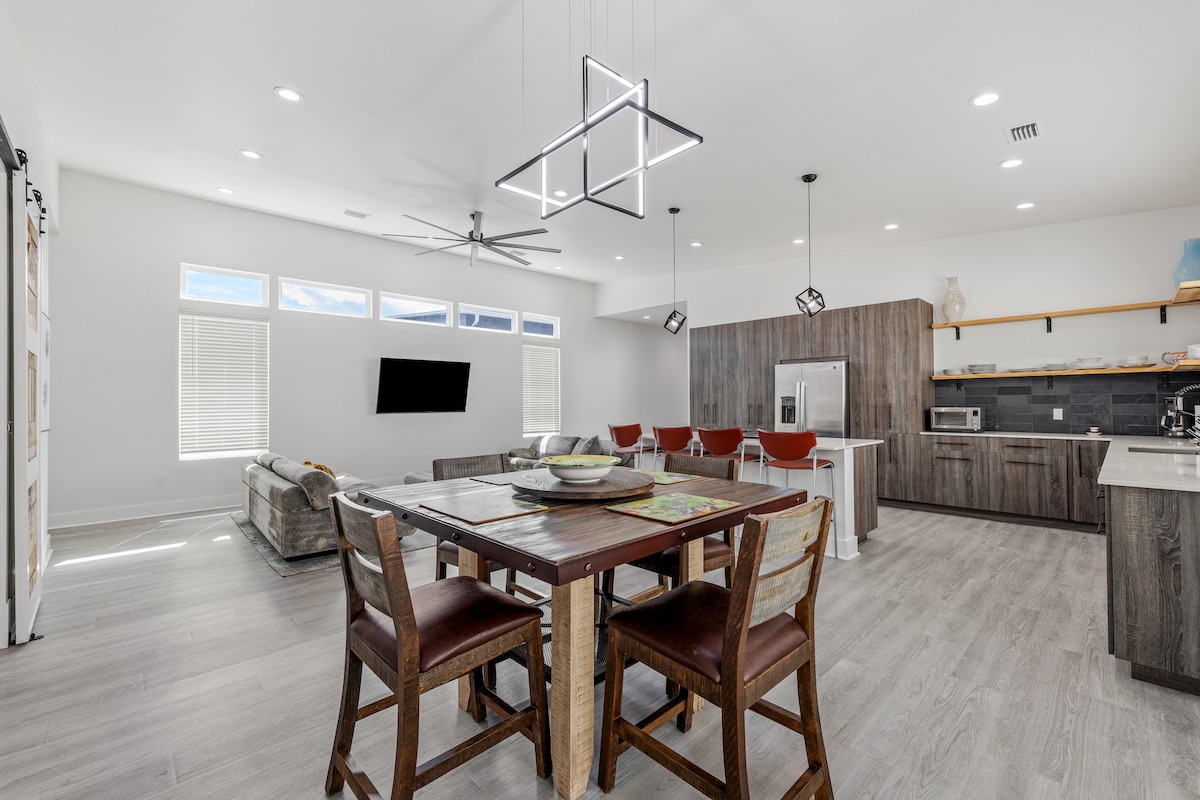 Détendez-vous dans cet espace calme et élégant. Profitez de la belle vue sur le lac depuis le salon spacieux, la cuisine/ salle à manger. La cuisine est équipée de tout pour préparer votre repas préféré. Regardez un bon film, tout en vous réchauffant jusqu'à la cheminée confortable. Jouez à un jeu de billard compétitif, tout en profitant de cette vue incroyable. Détendez-vous dans la balançoire avec un bon livre ou asseyez-vous sur le quai et profitez des couchers de soleil incroyables. Vous aimerez la maison du quai ; elle vous donne l'impression d'être sur une péniche.