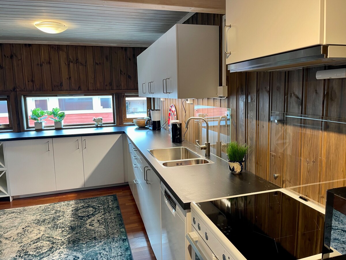 Chalet confortable et moderne avec un excellent emplacement en bord de mer avec des matelas de qualité. Le chalet a été rénové en 2018 et est disponible à partir du 5 août. Le chalet est situé à proximité d'un bon restaurant (5 min à pied). Le chalet dispose d'un lave-vaisselle, d'un réfrigérateur-congélateur, d'une douche, d'un barbecue à gaz, etc. Il y a de bons endroits pour pêcher à proximité. Le chalet est bien équipé, mais les serviettes, le linge de maison, le savon pour les mains et le shampoing ne sont pas inclus. Le linge de maison et les serviettes peuvent être loués. Veuillez informer l'hôte 2 à 3 jours avant votre arrivée.