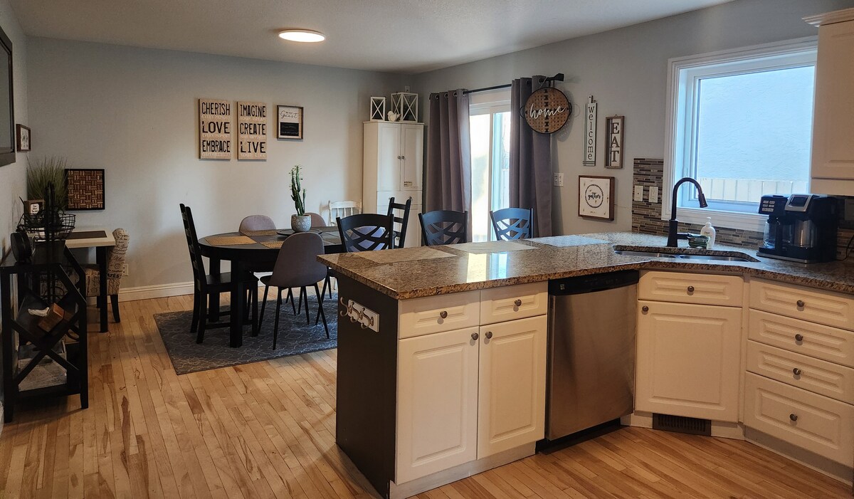 Détendez-vous dans une suite confortable et spacieuse à Lethbridge ! Cette suite lumineuse de 2 chambres dispose d'un aménagement ouvert avec une cuisine entièrement équipée, un îlot et un salon et un coin repas ensoleillés. Emplacement privilégié : À ✔ 6 min du centre-ville et du centre commercial ✔ À quelques pas des parcs locaux ✔ Commerces et restaurants à 5 min Équipements : ✅ WIFI et Roku/Netflix ✅ Keurig et sèche cheveux Stationnement ✅ dans la rue Qu'il s'agisse d'une visite d'affaires ou d'agrément, cette suite offre un mélange parfait de confort et de commodité !