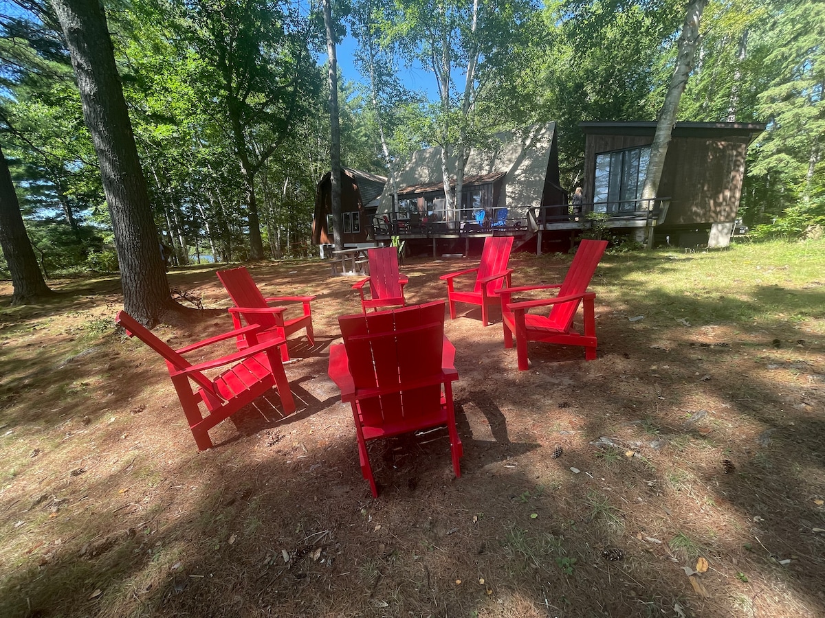 Ce site de cabane est niché dans la forêt au pied de l'escarpement Deacon avec vue sur les collines de la vallée Bonnechere. Il est à 10 minutes à pied du belvédère de l'escarpement et à environ 25 minutes à pied de votre canoë sur un petit lac. Il y a une table de pique-nique, un foyer, un bar extérieur sous un gazébo, une douche extérieure saisonnière et des toilettes extérieures privées. La cabane est livrée avec une carte de 30 km de sentiers pour la randonnée ou la raquette. Aucun voisin dans un rayon de 500 m dans toutes les directions. Possibilité de voitures d'invités occasionnelles qui passent.