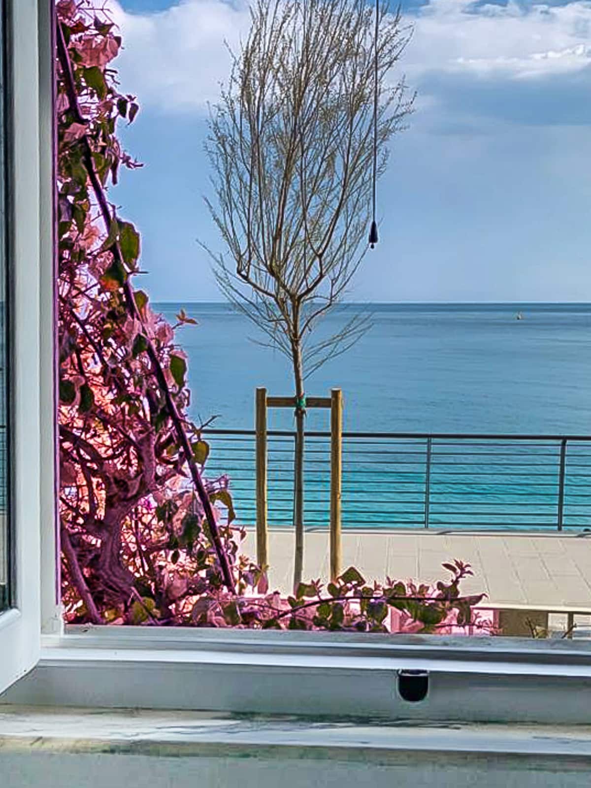 Profitez d'une expérience de luxe unique, à commencer par l'imposant bougainvillea sur la façade de la Villa Ferrer qui abrite l'appartement. En face, à quelques mètres, la plage et la mer bleu profond des Cinque Terre. Vue sur la mer également incroyable à l'intérieur de l'appartement, où vous trouverez d'authentiques carreaux de sol génois et une collection d'art et de design contemporains : comme une table Fornasetti emblématique, des chaises Kartell vintage, une édition limitée Rosenthal des années 70 et des œuvres de Sabattini et Kuroda.