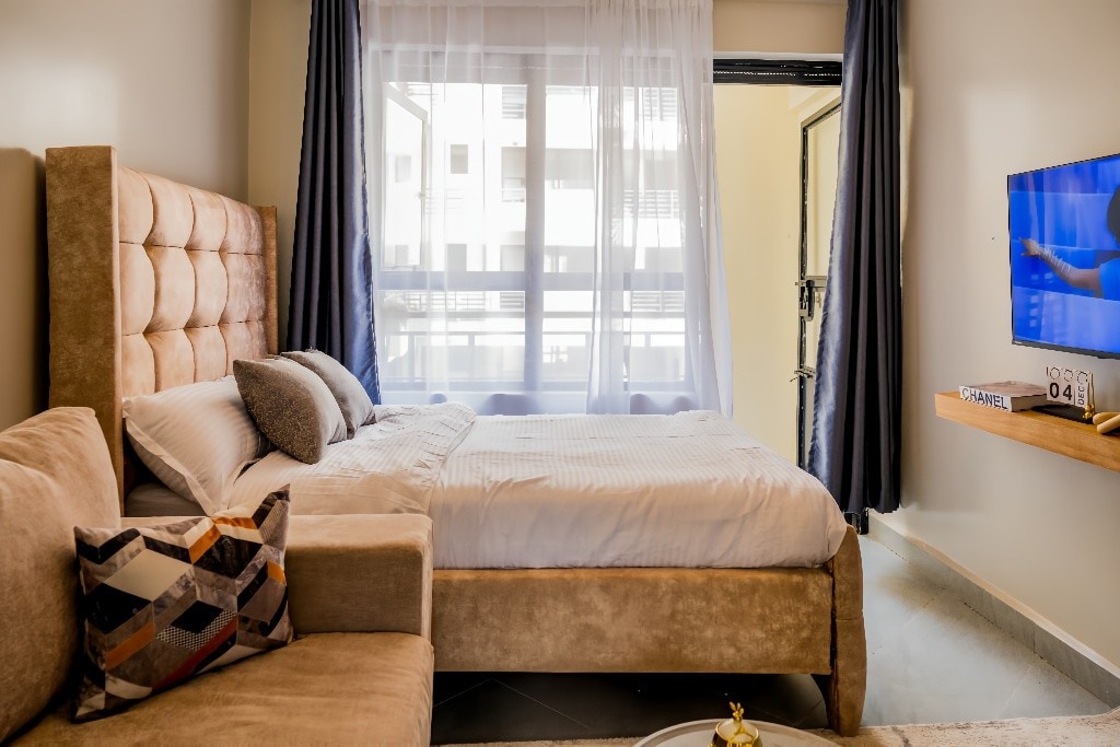 This bright 1 bed apartment sits in a quiet, serene neighborhood, perfect for anyone seeking calm, clarity, and connection with nature. Wake up to birdsongs, enjoy slow mornings with tea on the balcony, and let the stillness inspire you. What You’ll Love: • A cozy, plant-filled space designed for intentional living • Only 5 minutes from jogging trails, local markets, cafés, and Nairobi’s lush green corners • A short 15-minute drive to UN offices, Embassies, Village Market, and Karura Forest