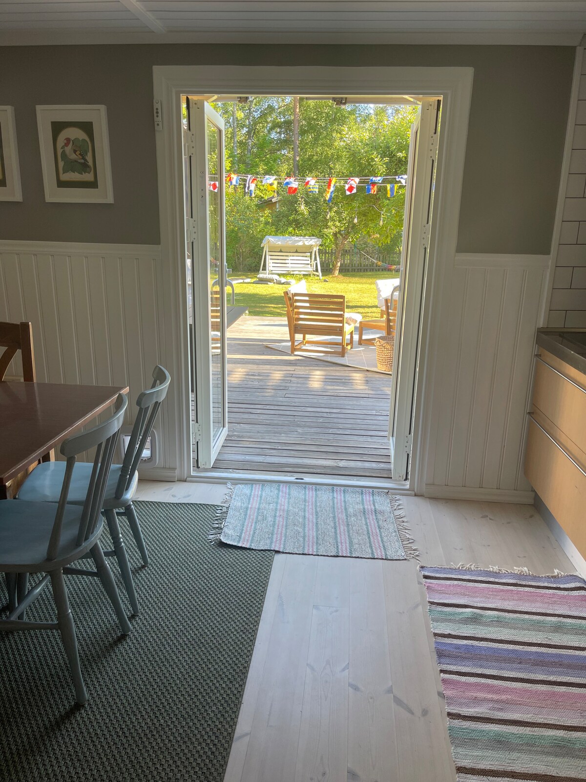Chalet de 30 m ² récemment construit. À 5min à pied du port. - Plan ouvert avec cuisine et salon en un. - Loft avec 2 lits simple. - Le salon est composé d'un canapé-lit. - La cuisine dispose d'une plaque de cuisson à induction et d'un four. - Salle de bains entièrement carrelée avec WC, douche et lave-linge. - Grande terrasse autour de la maison avec salle à manger. - La vue se compose d'une forêt de pins et de myrtilles - Le nettoyage n'est pas inclus. - Les animaux de compagnie sont interdits. - Les voyageurs apportent leurs propres draps et serviettes (peuvent être loués pour 150 SEK par personne)