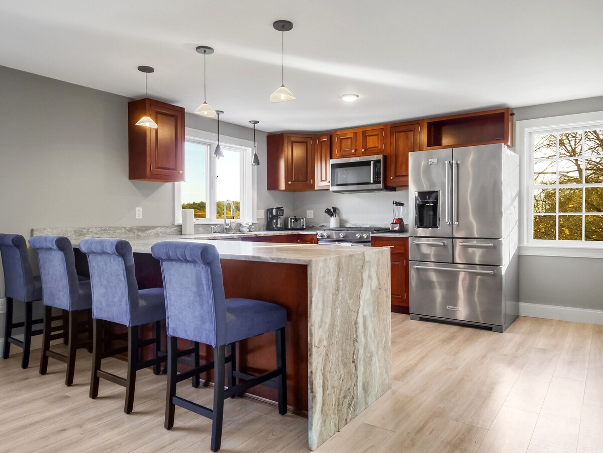 Indulge in luxury at The Thistle Inn, Boothbay Harbor. Our expansive Inn Suite offers two floors of refined elegance for families and groups. Relax in the regal master bedroom or the spacious living area with a sleeper sofa. Enjoy coastal inspired décor and ample natural light. A fully equipped kitchen awaits culinary enthusiasts. Two twin beds ensure comfort for companions, with modern bathrooms for convenience. Experience extraordinary hospitality where every detail exceeds expectations.