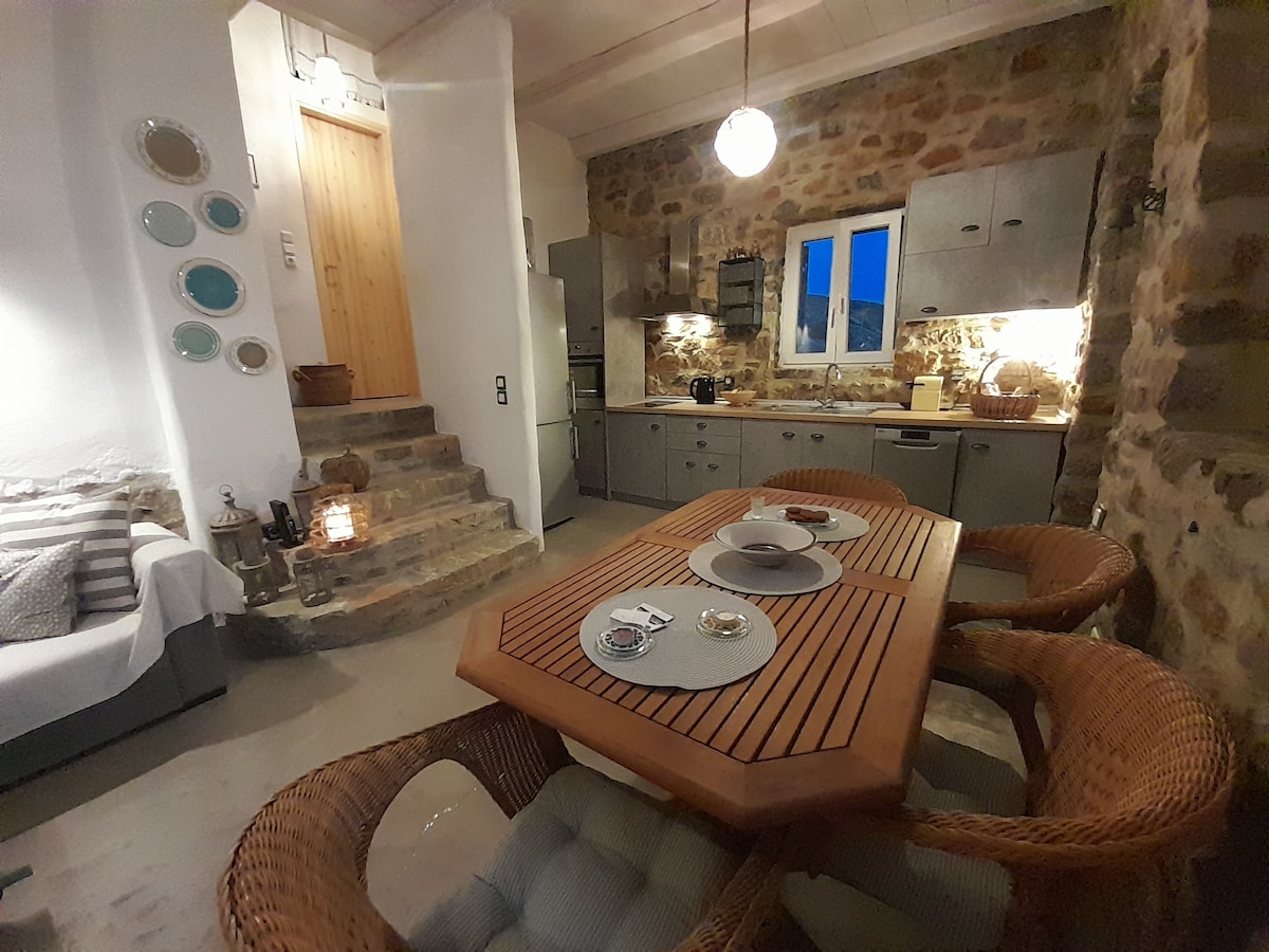 Maison en pierre « il mare » avec vue sur la mer Égée