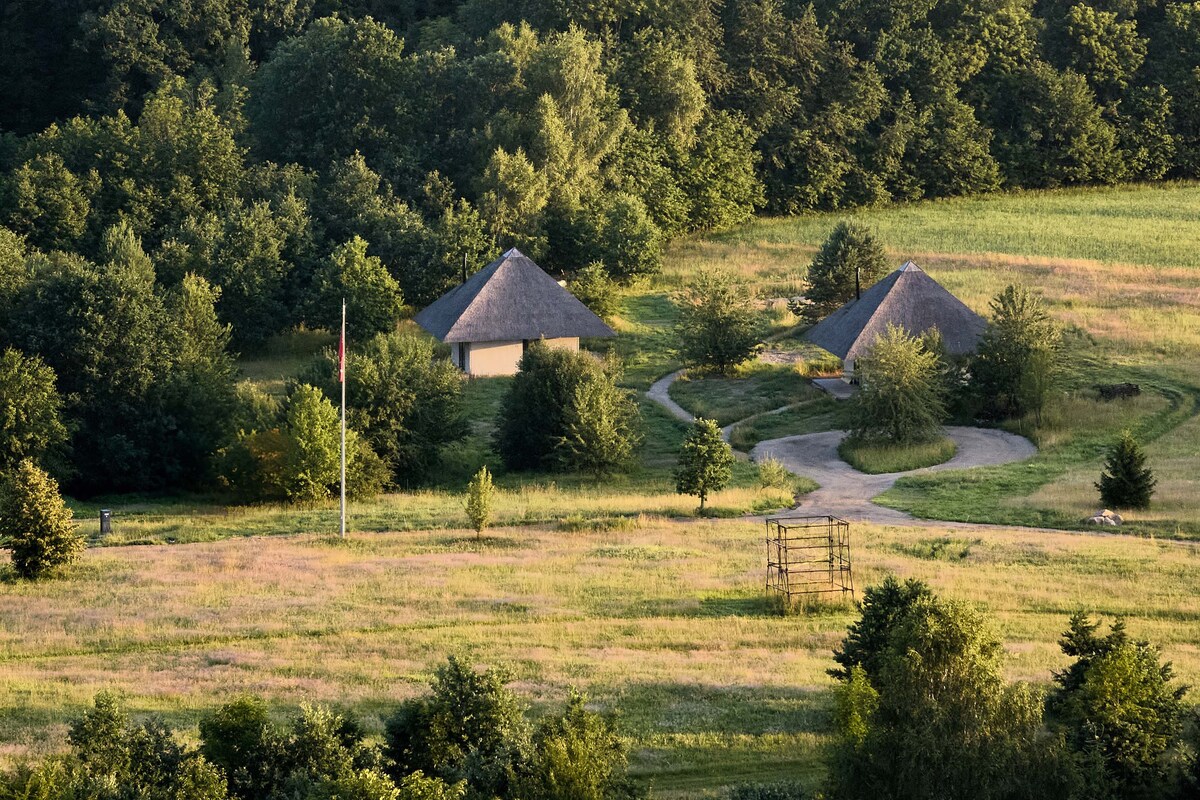 Il s'agit d'une interprétation architecturale moderne d'une ferme lituanienne traditionnelle, située dans un emplacement très pittoresque du parc régional de Salantai, à côté des pentes de la rivière Minija, sur la rivière Sauseriai, entourée de forêts Natura2000 et de prairies cultivées en fleurs. Nous vous invitons à nous rendre visite, à séjourner dans 1de2 petites maisons architecturales uniques, à nager dans la rivière, à passer du temps dans un sauna ou une piscine spa de massage, à marcher dans la forêt quand il pleut ou qu'il neige, à profiter de la nourriture, des conversations et de la nature.