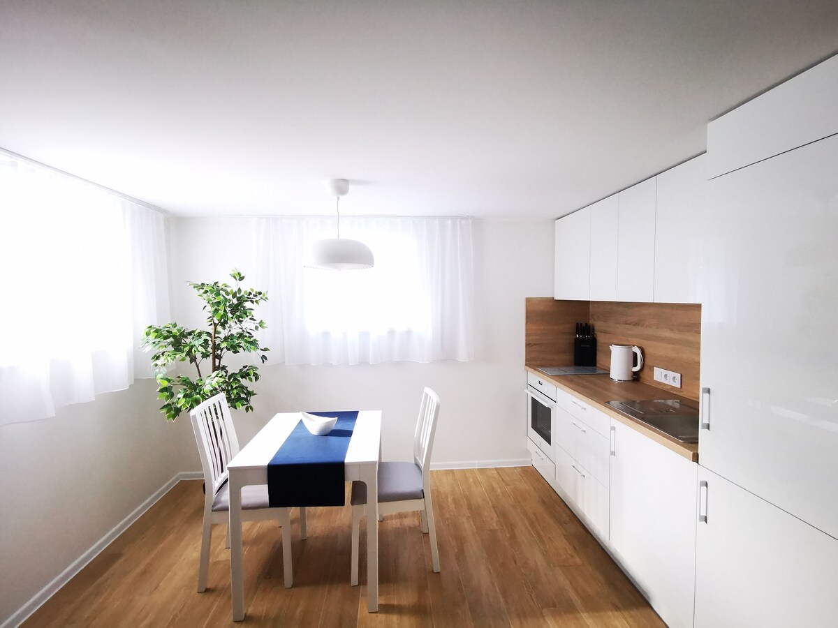 Vous pouvez séjourner et vous détendre dans cet espace confortable et élégant. L'appartement est moderne, il est au rez-de-chaussée, néanmoins il est lumineux et le soleil du matin entre dans la cuisine. Séjour parfait surtout pendant l'été car il ne fait jamais trop chaud, et pendant l'automne, le printemps et l'hiver le chauffage fonctionne bien. La cuisine est entièrement équipée et vous y trouverez tout ce dont vous avez besoin.