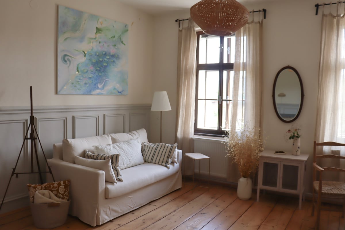 Dans notre hébergement familial élégant, vous vous sentirez comme chez vous. Vous avez à votre disposition une terrasse, un foyer et une belle vue sur le jardin. La maison est située au bord de la rivière et directement sur la piste cyclable. Vous pouvez y ranger vos vélos sans problème. Le parking est gratuit et se trouve à 50 mètres de la maison. Il y a deux appartements privés dans la maison. L'un est à vous (il est au rez-de-chaussée avec sa propre entrée) et l'autre est destiné aux autres clients (au 1er étage, également avec sa propre entrée). Chacun a sa propre terrasse et le jardin est commun. La maison de la propriétaire est située dans le quartier.