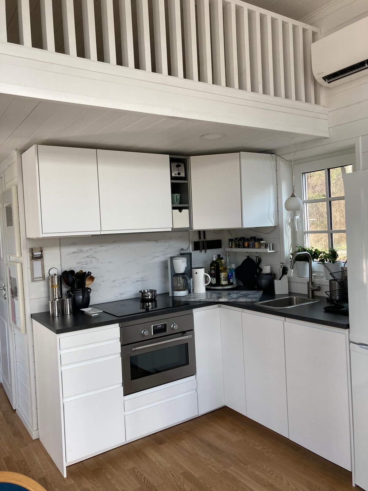 Détendez-vous dans cette atmosphère calme et unique au bord des célèbres plages de sable blanc (200 m). Sandkornet est une petite maison nouvellement construite (30 m ²) avec un grenier-lit. Vous aurez accès à une cuisine entièrement équipée et à une salle de bains. Être en mesure de manger le petit déjeuner ou le dîner grillé sur le patio avec vue. Le parking est inclus. À 17 min à pied de l'arrêt de bus le plus proche. À distance de vélo de la boulangerie Anna pour les délices locaux ou les courses à l'ICA. Les animaux sont les bienvenus !