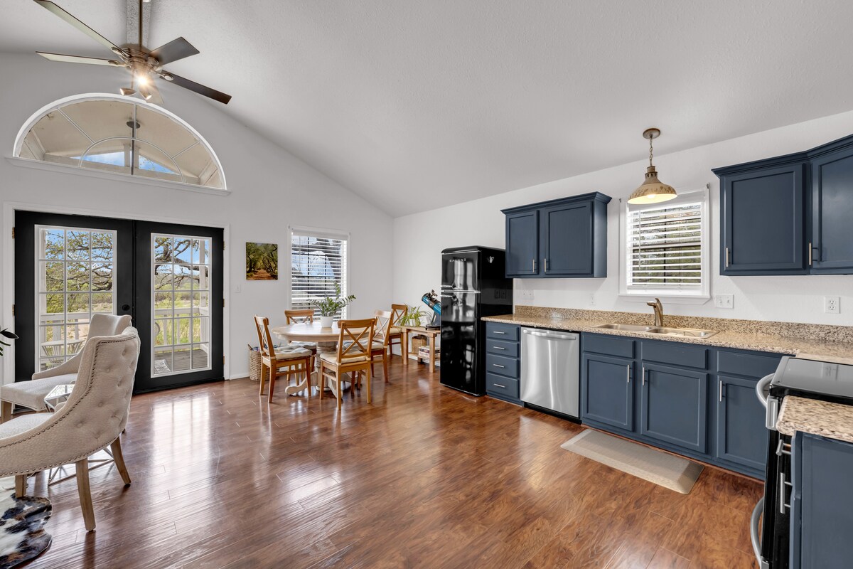 Détendez-vous dans ce logement calme et élégant. Imaginez-vous charger votre voiture avec quelques amis ou de la famille et à moins d'une heure de route d'Austin, vous êtes transporté dans une partie totalement unique du Texas. Vous passerez d'énormes affleurements de granit et traverserez la région des collines pour arriver à l'une des plus belles rivières du Texas… la Llano. La maison a été entièrement rénovée et dispose de toutes les nouvelles finitions et de draps de luxe. Il y a 2 espaces extérieurs pour observer la faune ou profiter d'un repas avec vue.