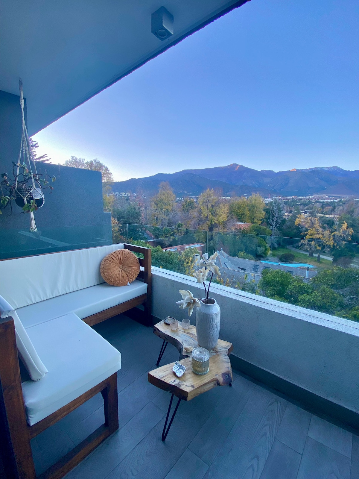 Premiado en arquitectura y recién renovado, un lugar único y acogedor con vistas panorámicas de Los Andes para disfrutar con familia y amigos o para solo desconectarse. Ubicada en un barrio tranquilo y exclusivo de Santiago, al final de una calle cerrada con total privacidad, cerca de restaurantes y parques. Cuentas con múltiples terrazas, jardines, gimnasio, quincho y piscina y a 5 minutos de Costanera Norte para llegar a todos los sitios destacados de Santiago para una estancia inolvidable.