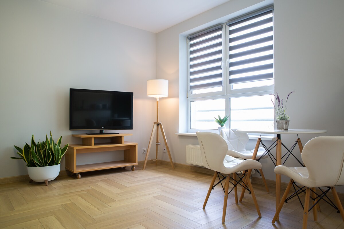 Nouvel appartement confortable et douillet dans la vieille ville, juste à côté du château. Dans un bâtiment neuf et confortable. Très proche de toutes les attractions - vous pouvez visiter Szczecin sans voiture. Arrivée sans problème à l'heure qui vous convient. Internet haut débit, télévision avec Netflix, livres, jeux et terrasse sur le toit pour rendre votre séjour plus agréable.