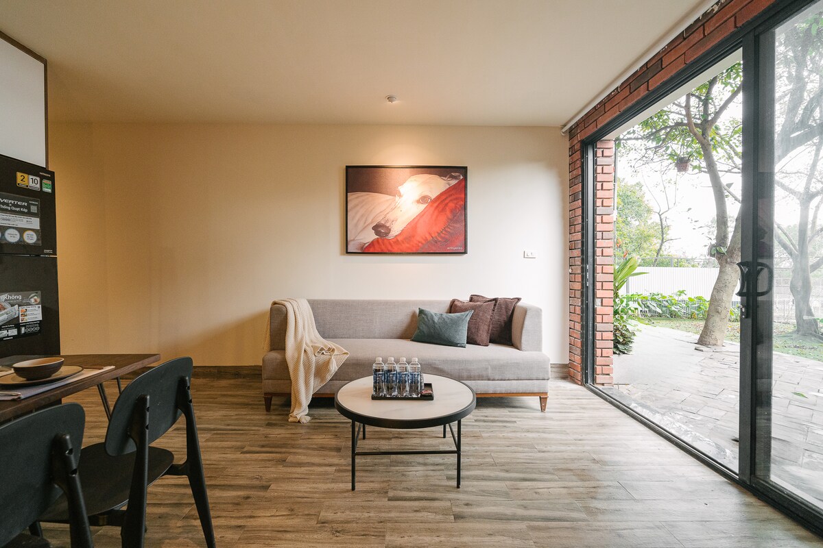 L'appartement vient d'ouvrir en juin 2025. Il est méticuleusement conçu dans un style du milieu du siècle mélangé avec des éléments culturels vietnamiens. Plus important encore, il est situé dans le district de Hoan Kiem, à seulement 5 minutes à pied du célèbre point d'enregistrement du café Train Street et à 5 minutes de la vieille ville de Hanoï. Profitez d'une expérience élégante dans ce logement central.