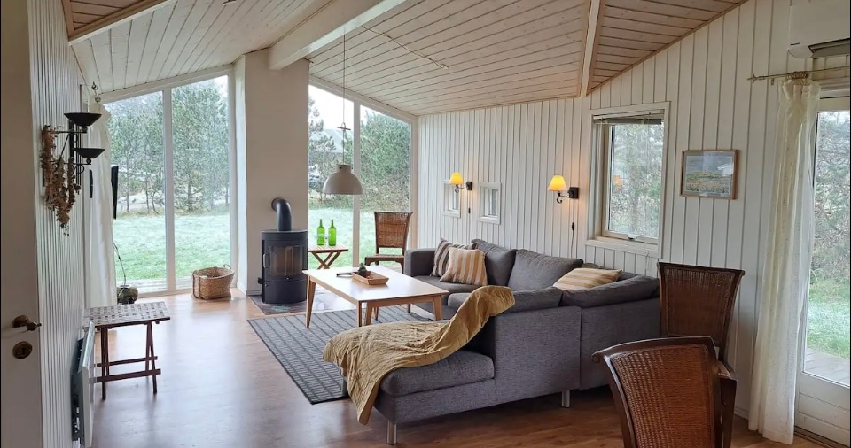 Bienvenue dans notre maison de vacances dans le cadre idyllique de Kettrup Bjerge, à 750 mètres des plages de sable de la mer du Nord. Nous venons de terminer la rénovation de la cuisine, du coin repas et du salon de cette belle maison, et nous espérons que vous l'aimerez autant que nous. La maison dispose de hauts plafonds, d'une ambiance scandinave, d'une cheminée et d'une vue imprenable sur la nature. La maison dispose de plusieurs grandes terrasses pour profiter du soleil, quel que soit le moment de la journée, et la meilleure plage de tout le Danemark est à seulement cinq minutes à pied.