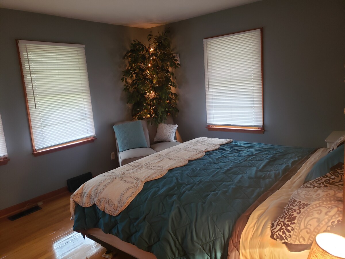 Bienvenue dans notre suite Treehouse ! Idéalement située dans un cadre champêtre, mais à proximité des commodités de la ville avec une vue paisible dans les arbres. Notre suite se trouve au-dessus de notre garage indépendant surdimensionné. Près de tout. Aéroport CLE, Baldwin Wallace, Oberlin College, centre-ville de Cleveland, Southpark Mall. Situé près de SR 71, SR 480, Ohio Turnpike, SR 83, SR 82 et SR 10. Nous avons le WiFi, Hulu Plus et les chaînes Disney, un bureau en forme de L pour travailler, un accès au foyer sur demande. Vos animaux sont bienvenus.