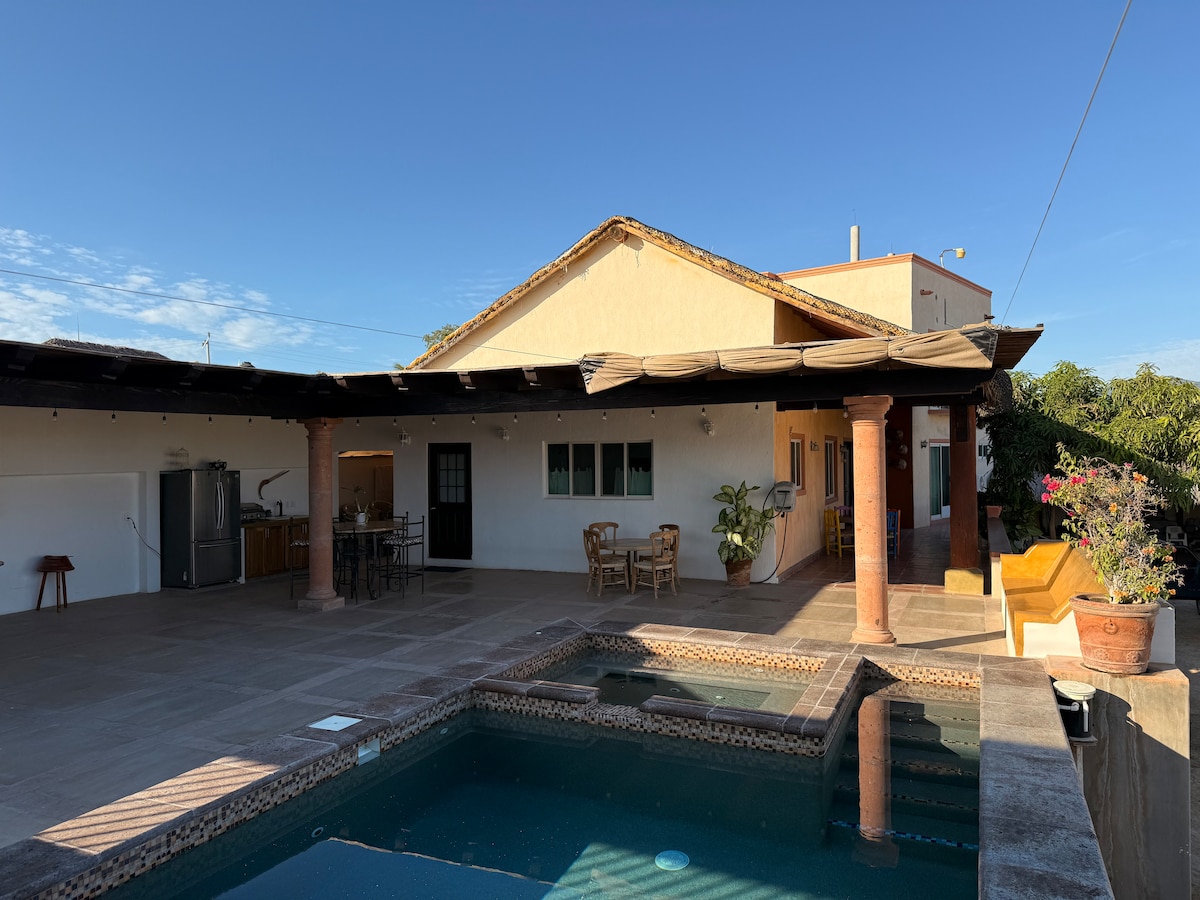 GRANDE MAISON DE DIRECTION sur la plage de la mer de Cortez avec vue sur l'océan et la montagne depuis chaque fenêtre. Joliment meublée avec des meubles mexicains artistiques. Des matériaux et des couleurs célébrant la culture locale à la lumière naturelle, vous apprécierez une grande cuisine, 4 chambres, 3 salles de bain complètes et une table de billard professionnelle grandeur nature en face d'un salon spacieux. À l'extérieur, il y a un barbecue extérieur, un grand patio, une piscine et même un pont d'observation sur le toit et un bar.
