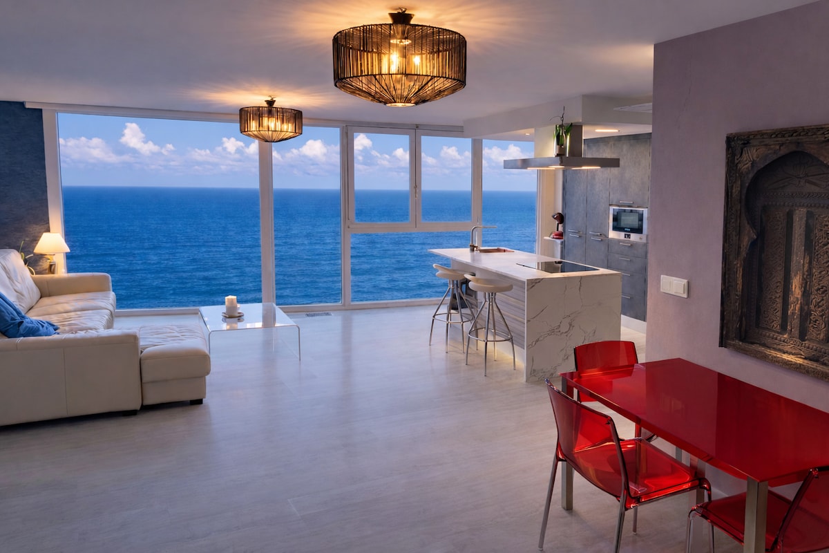 Appartement avec jacuzzi et solarium, vue sur la mer.