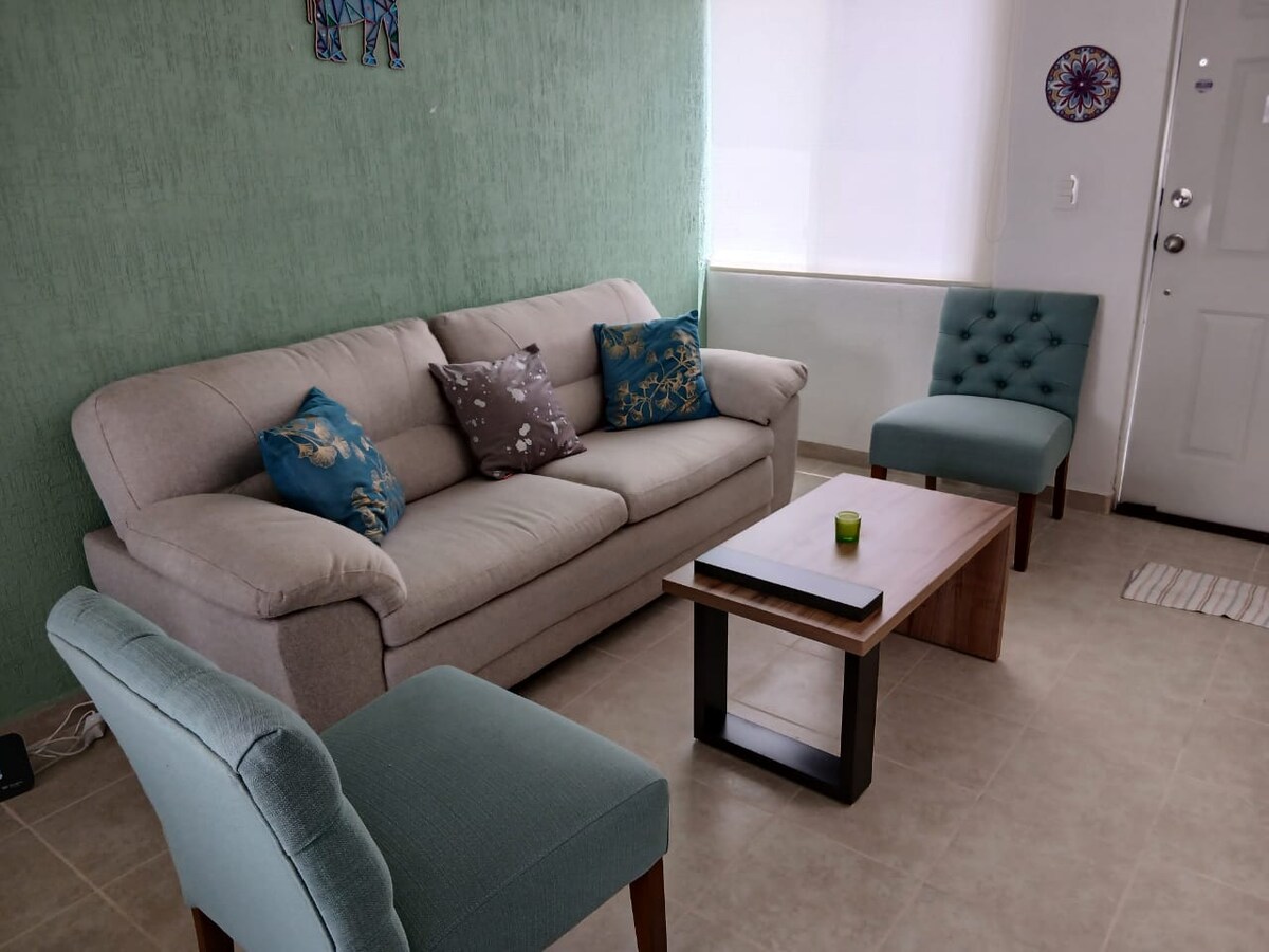 Détendez-vous avec toute la famille dans ce logement où le calme se respire. Excellent emplacement, entouré de réserves écologiques, et de pistes cyclables, grand espace, récemment meublé avec tout ce dont vous avez besoin pour 4 personnes, bon service Internet inclus, pour un séjour de promenade ou de travail confortable, à 4 minutes de la zone industrielle El Márquez à côté de l'Université polytechnique UPQ.