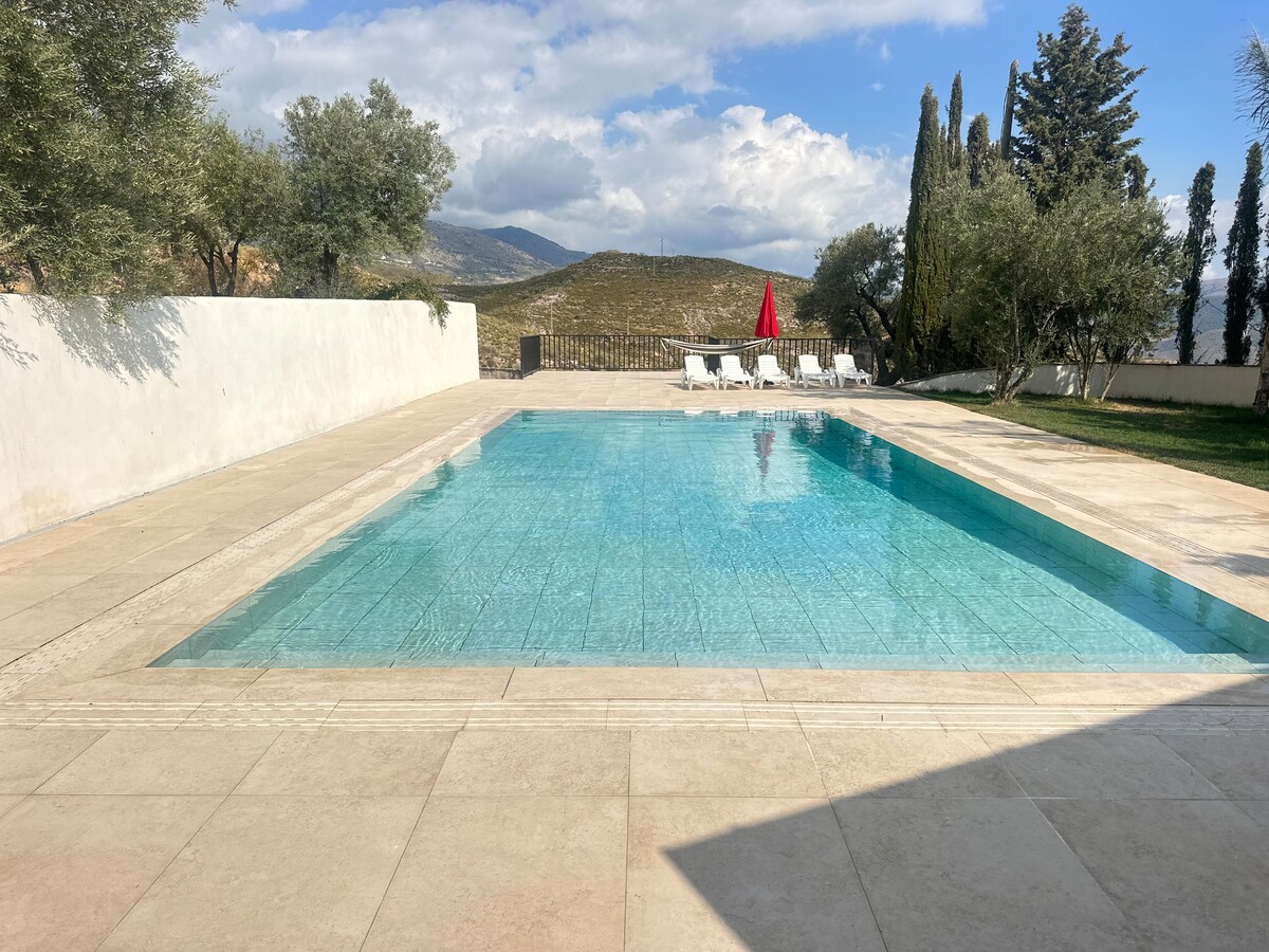 Cette villa indépendante exclusive récemment construite (2021) sur un seul étage très lumineux, rien que pour vous, pour vous reposer et vous détendre, dispose d'une piscine privée colorée avec une grande terrasse de 350 m2 et jacuzzi offrant une belle vue sur la mer et la montagne, des plafonds inclinés, un mobilier neuf, 3 chambres avec accès direct à la piscine et vue imprenable grâce à de grandes fenêtres, volets électriques où vous pourrez vous réveiller chaque matin avec une vue magnifique