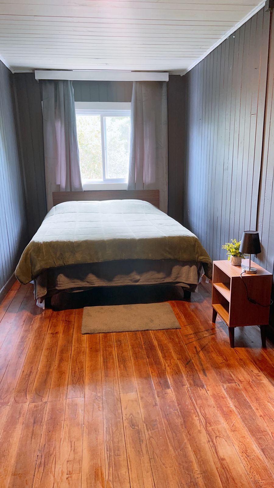 Chambre double à l'intérieur de l'auberge, avec salle de bains privée à l'extérieur. Vous vous réveillerez avec la vue sur l'estuaire de reloncavi et le volcan yachts, insérés dans le premier fjord de la Patagonie. Nous avons le chauffage électrique et les pellets. La cuisine est privée, mais nous vous facilitons tout ce dont vous avez besoin. Nous avons de grands espaces communs et 2 points de vue dans les jardins. Un petit déjeuner avec du pain fait maison et une préparation sucrée plus café grain en cafetière expresso. C'est l'endroit parfait !