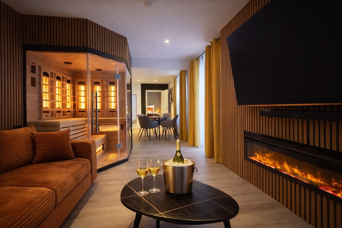 Stilvolle Unterkunft mit modernem Design und besonderem Wohlfühlfaktor. Highlight ist der private Wellnessbereich mit Infrarot-Tiefenwärme-Sauna sowie die großzügige, überdachte Dachterrasse zum Entspannen. Ein 75” Smart TV, hochwertige Ausstattung und das gemütliche Boxspring Bett sorgen für maximalen Komfort. Das durchdachte Raumkonzept schafft eine warme Atmosphäre – ideal für Paare oder kleine Gruppen für eine erholsame Auszeit an der Mosel.