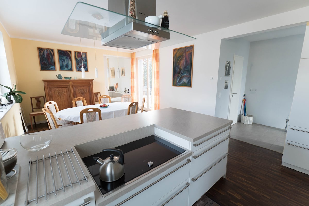 Mon logement est un Whg. complet dans l'annexe d'une maison individuelle à proximité de la plage de la mer Baltique, des activités adaptées aux familles et une culture abondante à Lübeck à Hauf, arrêt de bus à 1 minute à pied. Tu vas adorer mon logement pour son cadre magnifique, l'espace en plein air sur la véranda, la vue sur l'eau de la Trave, les magnifiques levers de soleil sur l'eau. Idéal pour les couples, les voyageurs d'affaires et les familles avec enfants. Les deux chambres mentionnées sont des chambres à pignon (voir photo).