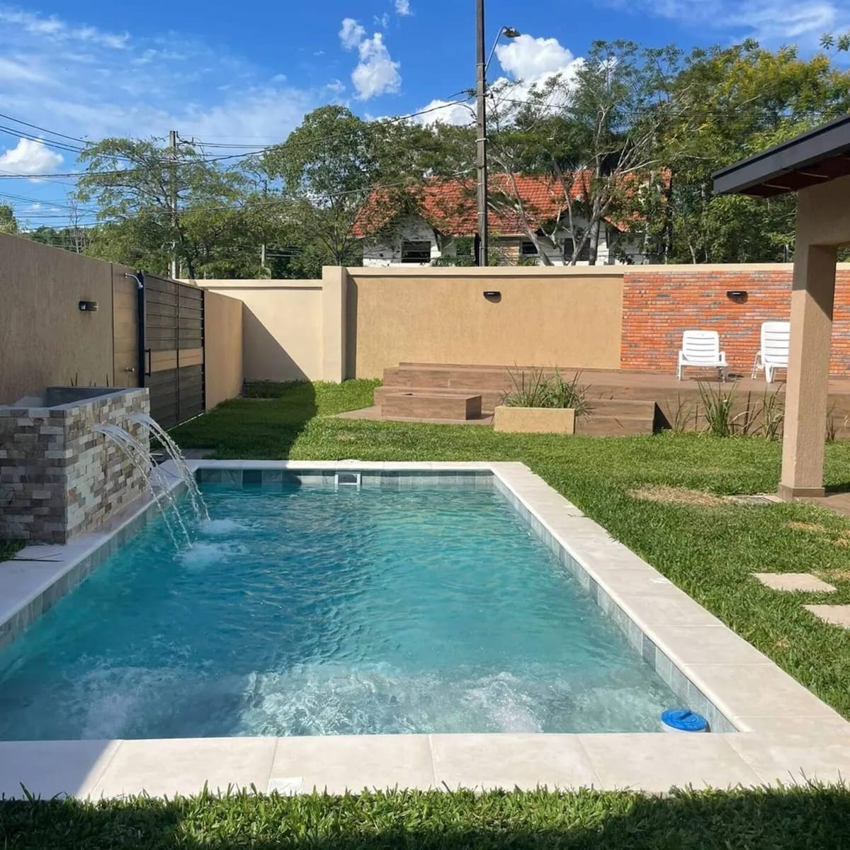 Détendez-vous dans ce logement calme à quelques minutes de l'aéroport d'Asunción, avec une belle terrasse avec barbecue, des jeux pour enfants et une piscine.