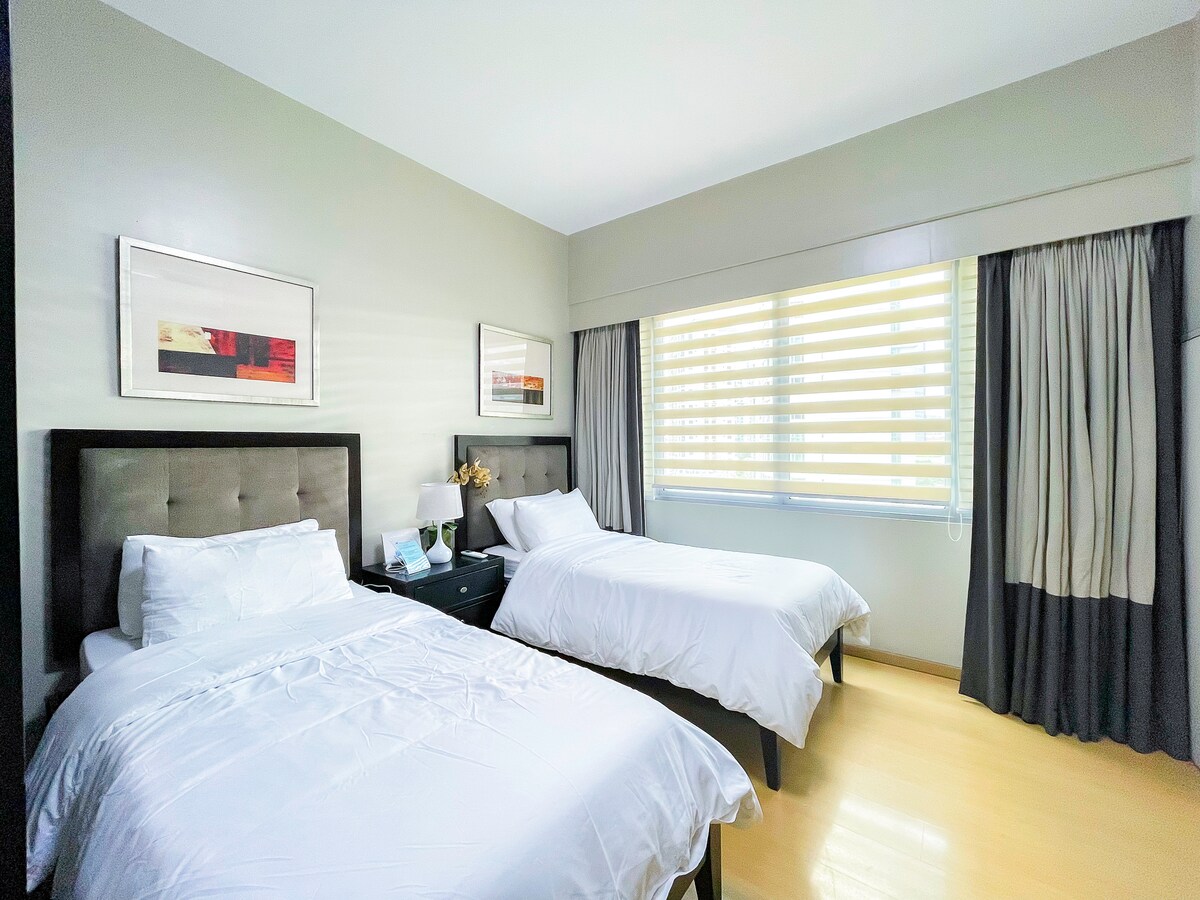 Studio Surface de l'unité : 37 peut organiser une place de parking si nécessaire - au sein de Bonifacio Global City - grands établissements dans les environs - 2 lits simples - peuvent être combinés - pour les lits combinés - nous fournissons une mousse personnalisée entre les 2 lits simples - avec draps et articles de toilette ; - avec télévision intelligente de 43 pouces ; - avec Wi-Fi et Netflix ; - avec ustensiles de cuisine et micro-ondes - fer à repasser/sèche-cheveux pour vos vêtements ; - Chauffage.