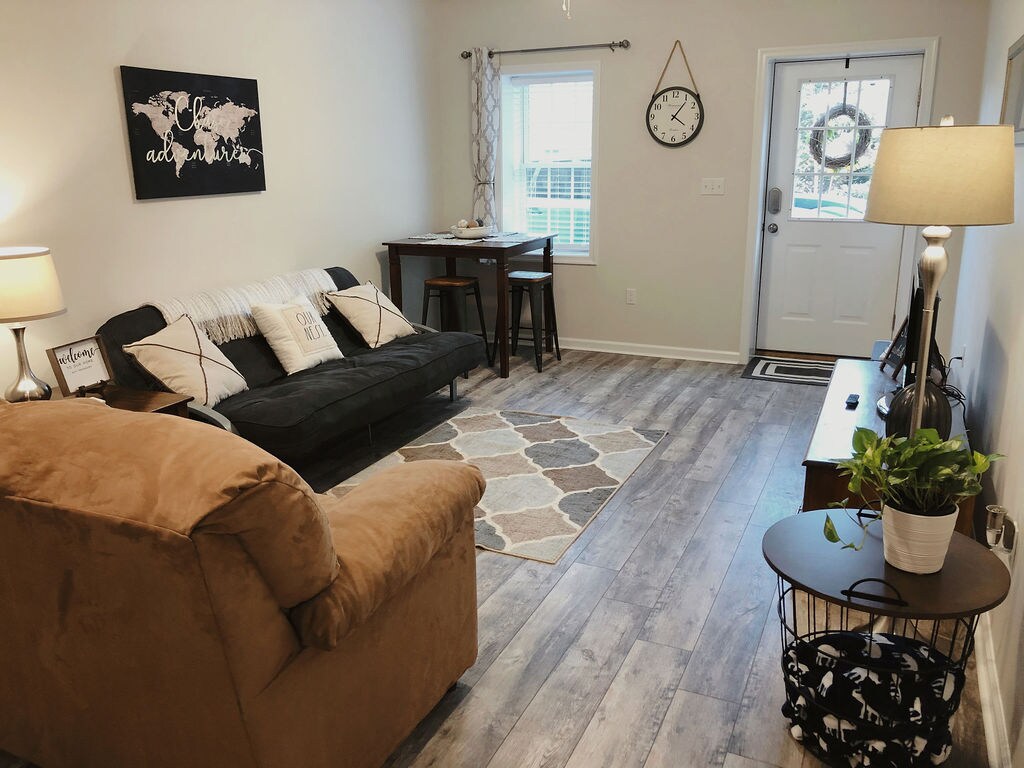 Have you ever wondered what it would feel like to live in a tiny home? Our modern day studio is only 270 square feet, but has all of the common amenities found in much larger houses. Experience the "Tiny House Movement" for yourself in our small NYC themed studio. - Only 2 miles from Liberty University (LU) and 5 miles from University of Lynchburg (LC) - 4K TV with Netflix, Sling, and Blu-ray - Queen bed - Twin pull-out sofa - kitchenette - luxurious shower - washer/dryer - 45' from main home