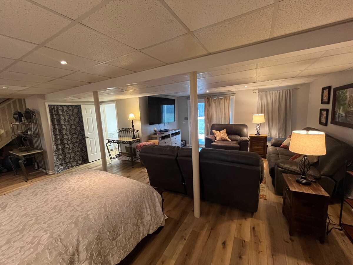 Bienvenue dans notre appartement pratique au niveau inférieur ! Notre famille vit dans cette maison à l'étage et nous avons rénové notre sous-sol pour l'hébergement et nous aimons le partager avec les familles, les étudiants, les navetteurs et tout le monde ! Notre maison bénéficie d'un excellent emplacement dans un quartier calme à moins de 10 minutes de LU et CVCC, et à environ 15 minutes du centre-ville. Vous apprécierez notre maison pour l'entrée privée, l'emplacement pratique, la décoration moderne, le Wi-Fi rapide et la kitchenette maison !