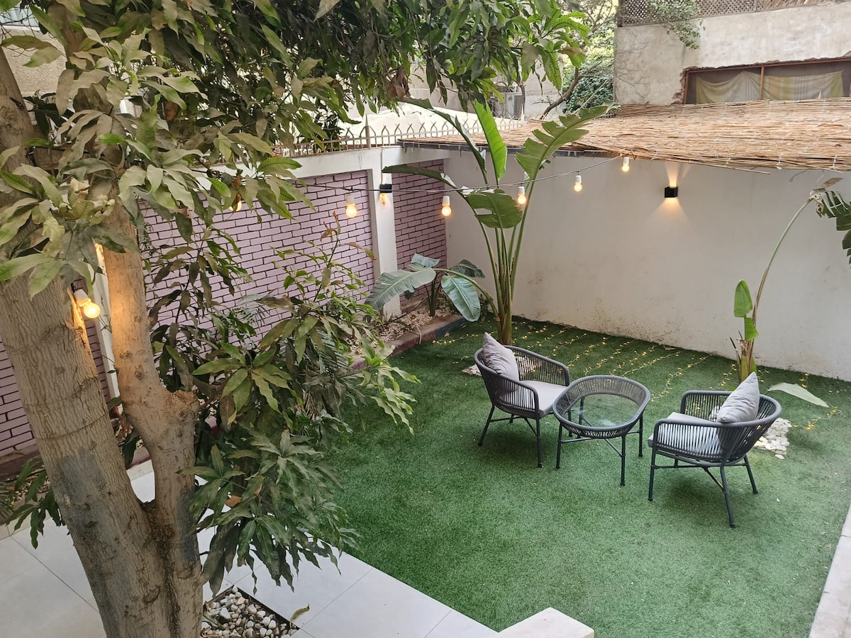 Profitez d'une expérience chic dans notre appartement situé au cœur de Degla Maadi avec jardin privé. Très proche de la zone commerçante, des restaurants et des bars. Parfait pour les voyages d'affaires, les voyageurs en solo et les couples. Cet espace unique et chic est situé sur la route 212 à Degla Maadi, l'un des points chauds du Caire, au cœur du Caire. Espace entièrement meublé et équipé avec 2 lits doubles et un lit Queen Size et 2 salles de bains avec un espace extérieur.