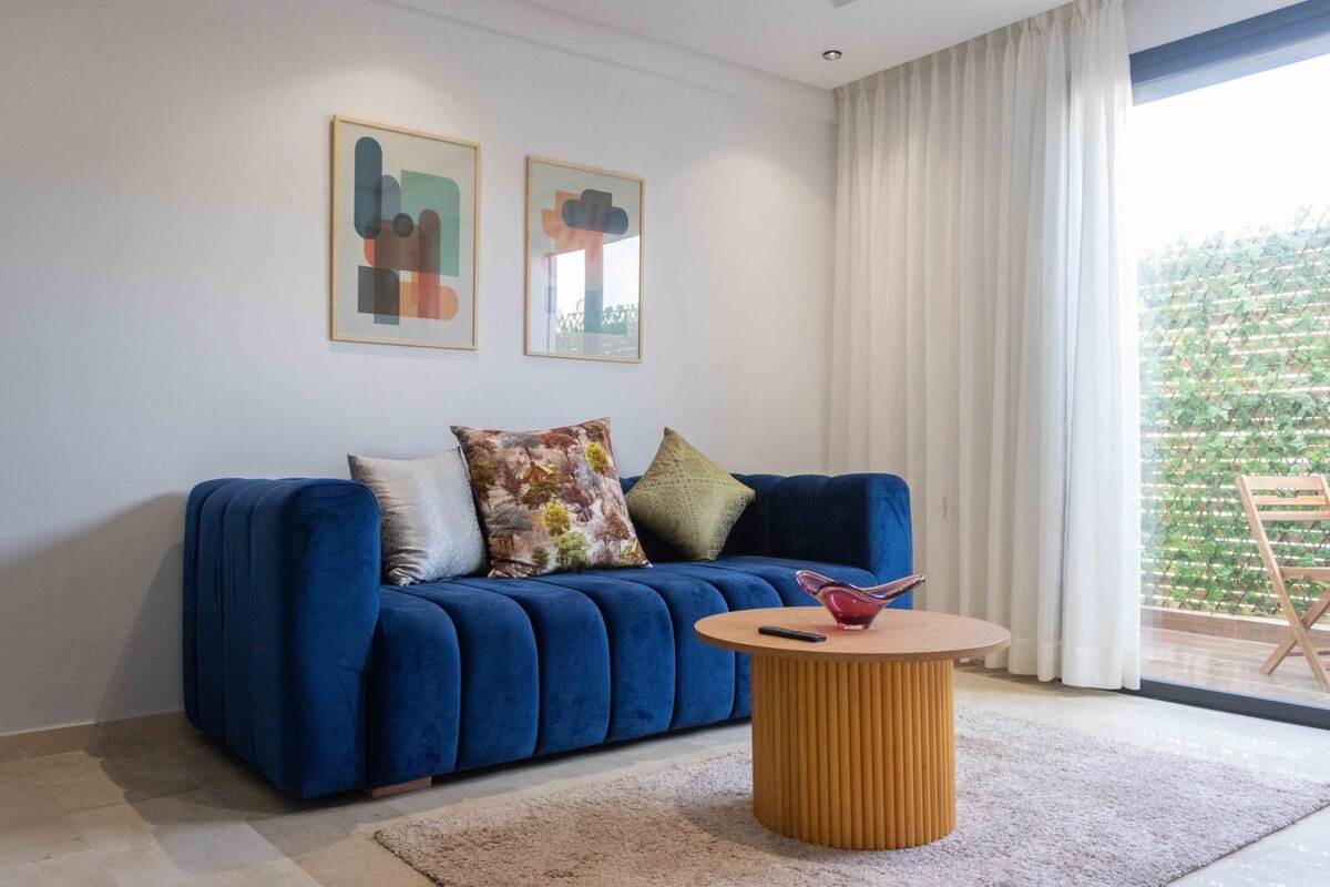 Experience the perfect blend of luxury and comfort in this stylish studio located in the heart of Casablanca. Ideal for both business travelers and vacationers, this modern space features a fully equipped kitchen, a dedicated workspace, and a private terrace for your morning coffee or evening relaxation. Unwind in the spacious living area with floor-to-ceiling windows that flood the space with natural light, or take advantage of the on-site gym to stay active during your stay.