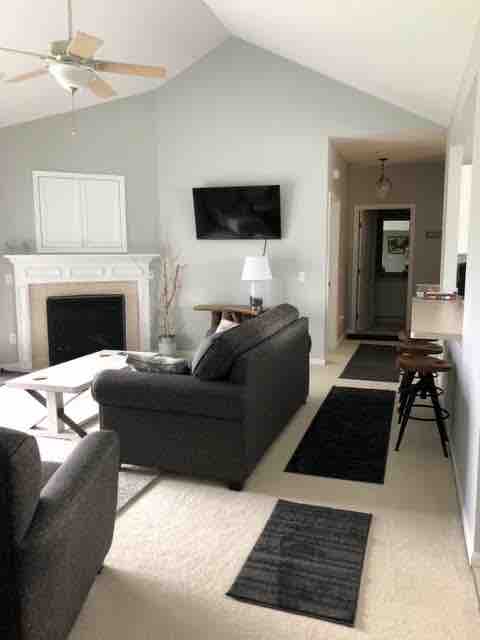 Enjoy my beautiful 3-bedroom waterfront condominium located at the Shores at Mackinaw on the pristine shores of Lake Huron. You will get to experience the beautiful views of the Mackinac Bridge and historic Mackinac Island. My condominium is fully furnished. You must climb 17 steps to enter the main level of the condo. This is where everything is located other than the garage.