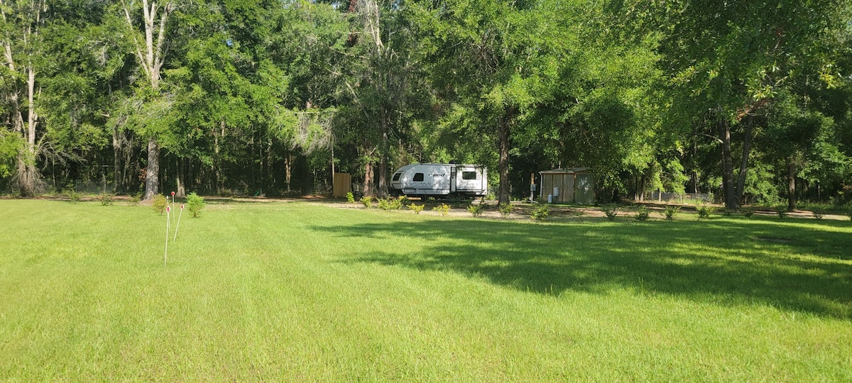 ** Retraite confortable pour caravanes sur une ferme familiale de 14 acres** Niché dans une ferme paisible de 14 acres près du parc d'État de Blue Springs, ce camping-car de 34 pieds entièrement chargé offre une escapade paisible parfaite pour les amoureux de la nature. Profitez de la baignade, de la plongée, du kayak et de la pêche à Blue Springs, ou explorez les sentiers de vélo, d'équitation et d'observation des oiseaux à proximité. Visitez le centre-ville historique de Madison ou le bord de la ville à Lee pour faire de fantastiques boutiques d'antiquités et une infusion froide au Bullpen. Idéal pour se reposer, réservez votre aventure tranquille dès aujourd'hui !