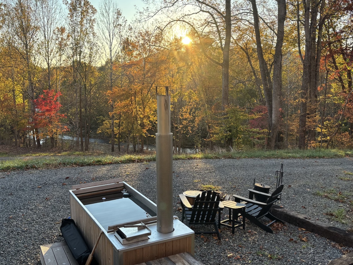 Séjournez près des meilleurs sentiers de montagne du parc national de Shenandoah avec quelques vignobles et brasseries à proximité. Vous aurez accès à... -- Notre ruisseau privé et notre trou de baignade -- Un jacuzzi sous les étoiles -- WiFi Starlink avec des vitesses de téléchargement allant jusqu'à 200 Mbps, adéquat pour le travail à distance et les services de streaming (voir plus ci-dessous) -- Une cuisine entièrement équipée avec tout l'équipement dont vous aurez besoin pour préparer vos propres repas -- 2 chambres et un matelas gonflable dans l'espace commun