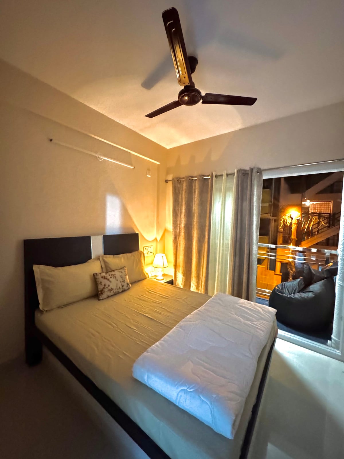 Vivez au cœur de Koramangala dans notre élégant penthouse moderne avec - Une terrasse ouverte spacieuse, parfaite pour le café du matin ou les cocktails du soir. - Une cuisine entièrement équipée avec * Couverts, assiettes et verres * Poêles de cuisine * Cuisinière électrique * Bouilloire électrique * Friteuse à air comprimé * Réfrigérateur * Grille-pain * Blender - Intérieurs douillets * Lit double king size * Table de lecture * Table et chaises de jardin * Fauteuils * Comptoir et chaises de bar - Idéal pour * Couples * Voyageurs solo