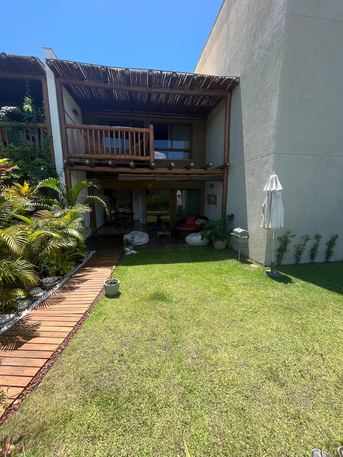 Idéal pour ceux qui cherchent la tranquillité d'esprit. La maison est spacieuse, dispose de quatre chambres, 4 salles de bain, cuisine complète, climatisation, ventilateurs, avec piscine privée, espace gastronomique, garage, est dans la copropriété avec portail 24h/24, aire de jeux pour enfants, à proximité des plus belles plages de la Coconut Road ( BR 099), à 35 km de la plage du fort, 32 de l'aéroport de Salvador. N'oubliez pas que la ville d'arembepe a le village des hippies, et le projet Tamar, une localité riche en marchés de restaurants, etc.